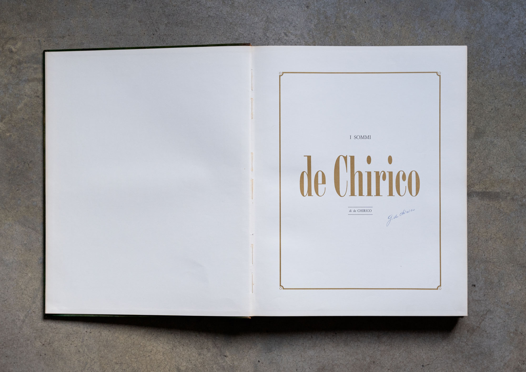 GIORGIO DE CHIRICO(1888 - 1978)I sommi di De Chirico1965Catalogo monografico realizzato in 1300 esemplari, firmato sulla prima pagina50 x 40 cmSeda EdizioniDifetti