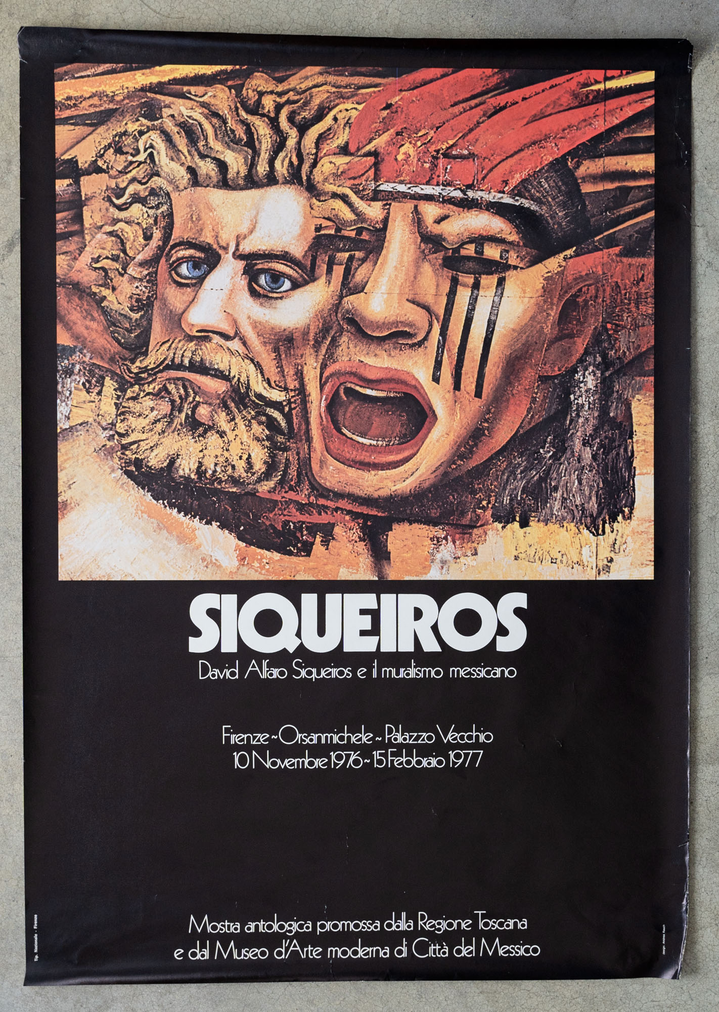 SIQUEIROS DAVID ALFARO(1896 - 1974)Siqueiros. David Alvaro Siqueiros e il muralismo messicano1977Manifesto edito in occasione della mostra tenutasi presso Palazzo Vecchio, Firenze (10 novembre 1976 - 15 febbraio 1977)99 x 68 cmDifetti