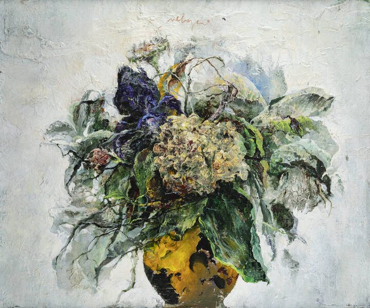 VELASCO (Velasco Vitali) <BR>Bellano (CO) 1960<BR>"L'iris viola" 1986