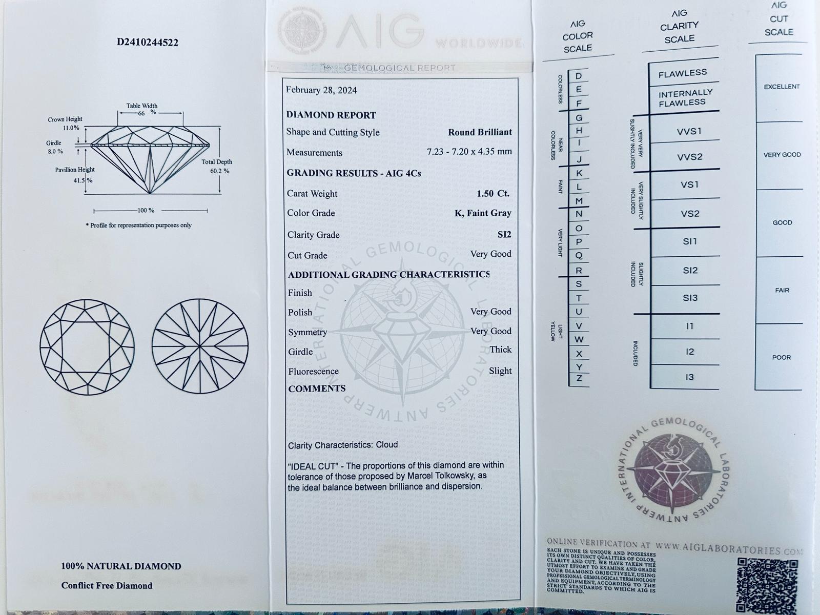 DIAMANTE 1,5 CT K - PUREZZA SI2 - TAGLIO BRILLANTE - CERTIFICATO AIG - C40215-10