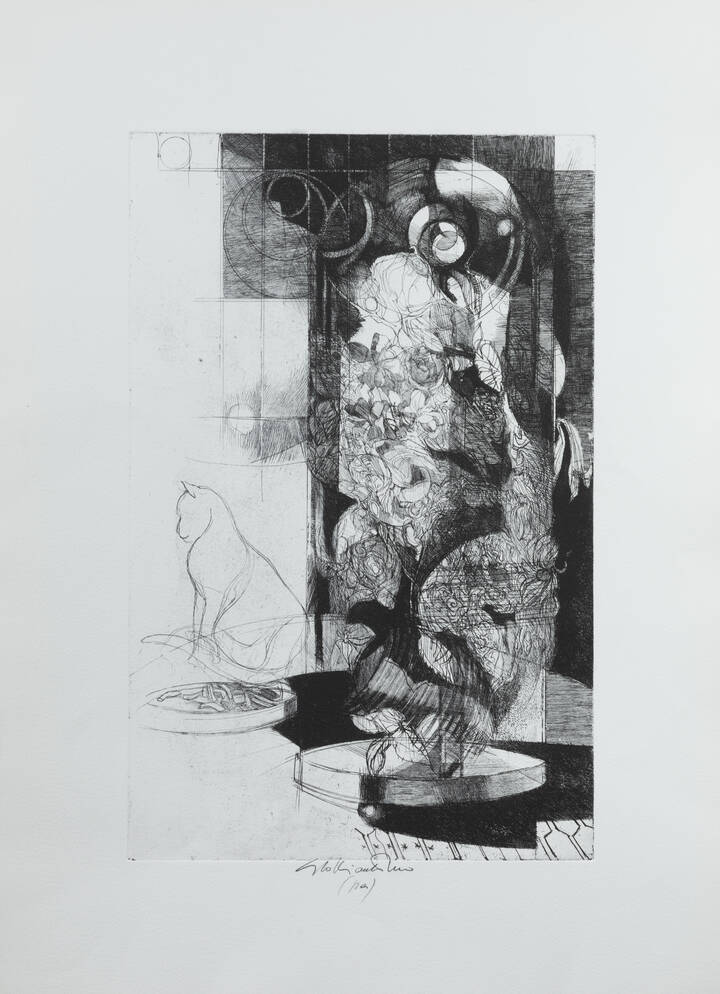 GIACOMO SOFFIANTINO<BR>Torino 1929 - 2013<BR>"Composizione con gatto"