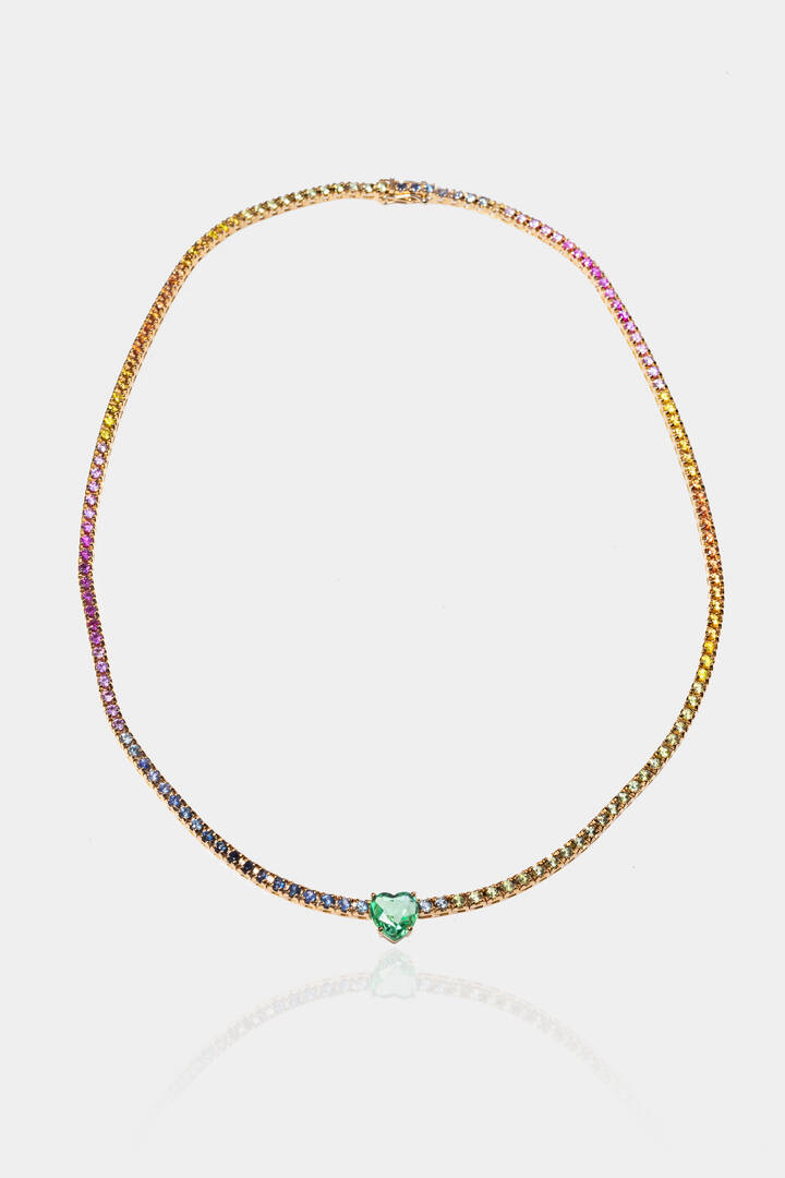 in oro rosa, modello tennis, con zaffiri colorati per totali ct 8,20 ca ed al centro cuore in tormalina di ct 1,80 ca