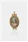 in oro giallo, di forma ovale con decori a festoni e fiocchi; al centro miniatura raffigurante giovane fanciulla in costume.