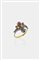 in oro a bassa caratura ed argento, sommità a volute con rosette di diamanti e quattro rubini taglio a goccia e rotondo