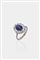 in oro bianco, sommità a margherita, al centro zaffiro taglio ovale di ct 2 ca, contornato da diamanti taglio 16/16 per totali ct 0,50 ca, probabile colore G-H, purezza IF-VVS