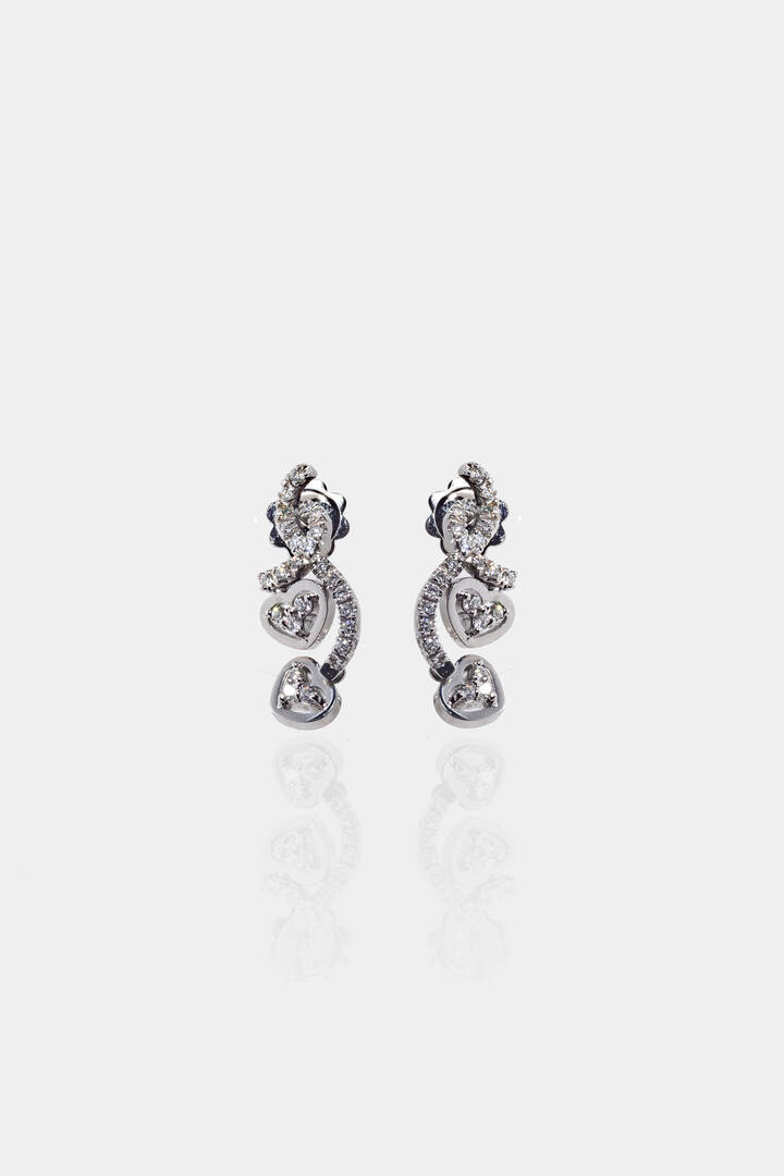 in oro bianco con quattro cuori pendenti in diamanti taglio brillante per totali ct 0,50 ca, probabile colore G-H, purezza IF-VVS