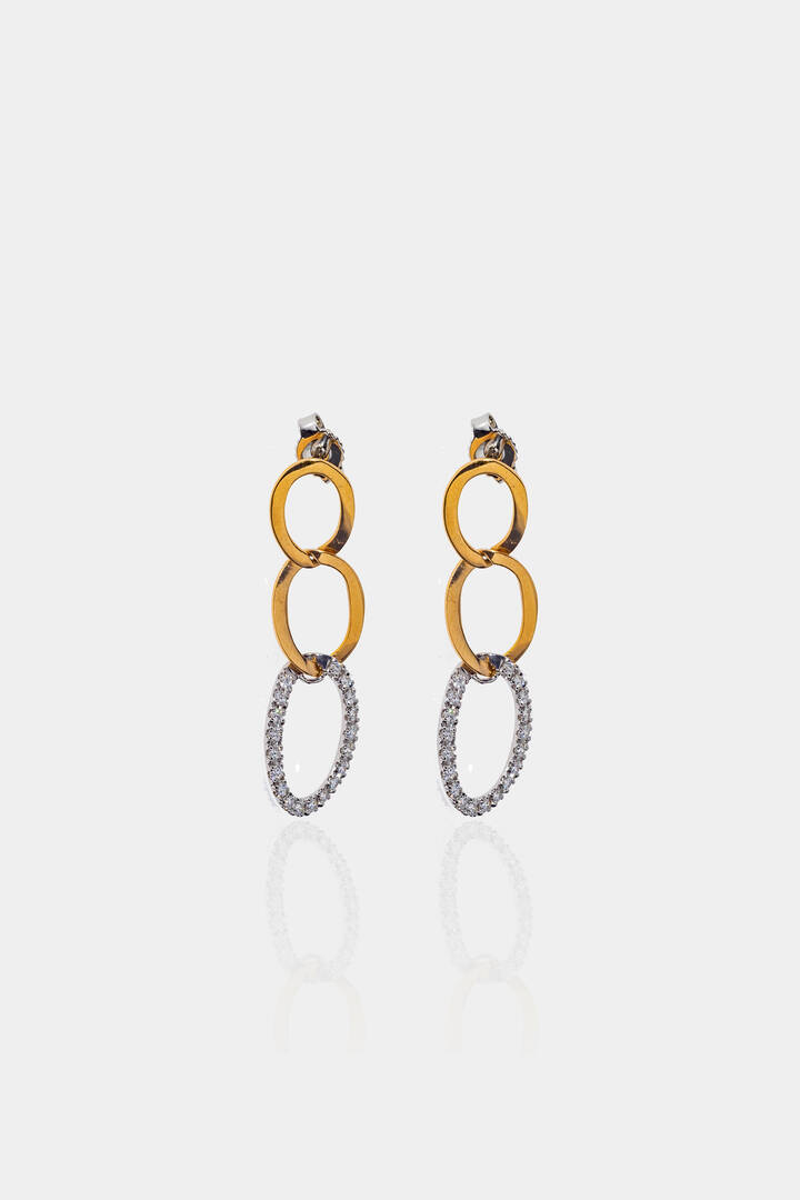in oro rosa e bianco, composto da anelli ovalizzati in diamanti taglio brillante per totali ct 0,44 ca, probabile colore G-H, purezza IF-VVS