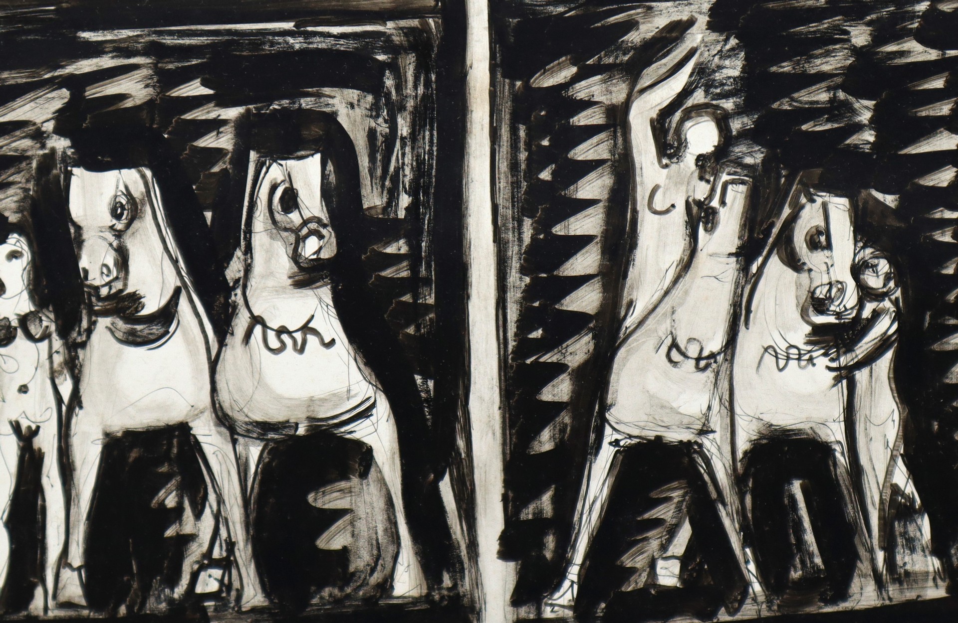 Giuseppe Defeo (1914-2000) - Uomini e cavalli, 1971 H cm 34x24 - in cornice H cm 47x37 Firmato e datato in basso a destraFirmato e datato in basso a destra