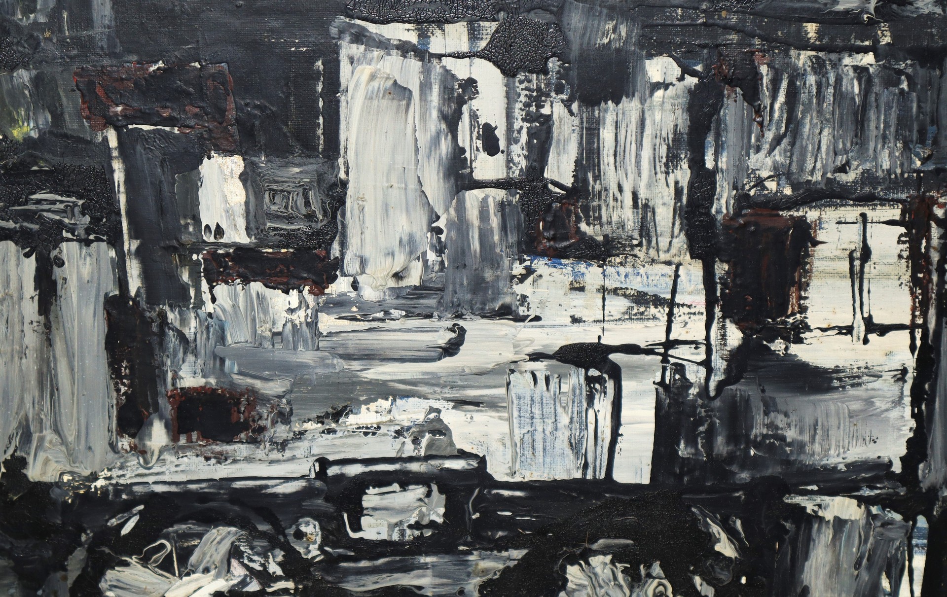 Domenico Girbino (Bronte 1935-Catania 2013) - Composizione astratta H cm 40x60 - in cornice H cm 52x72 Tecnica mista su tela Firmata Mimmo Gibino (tracce di firma in basso a destra).
