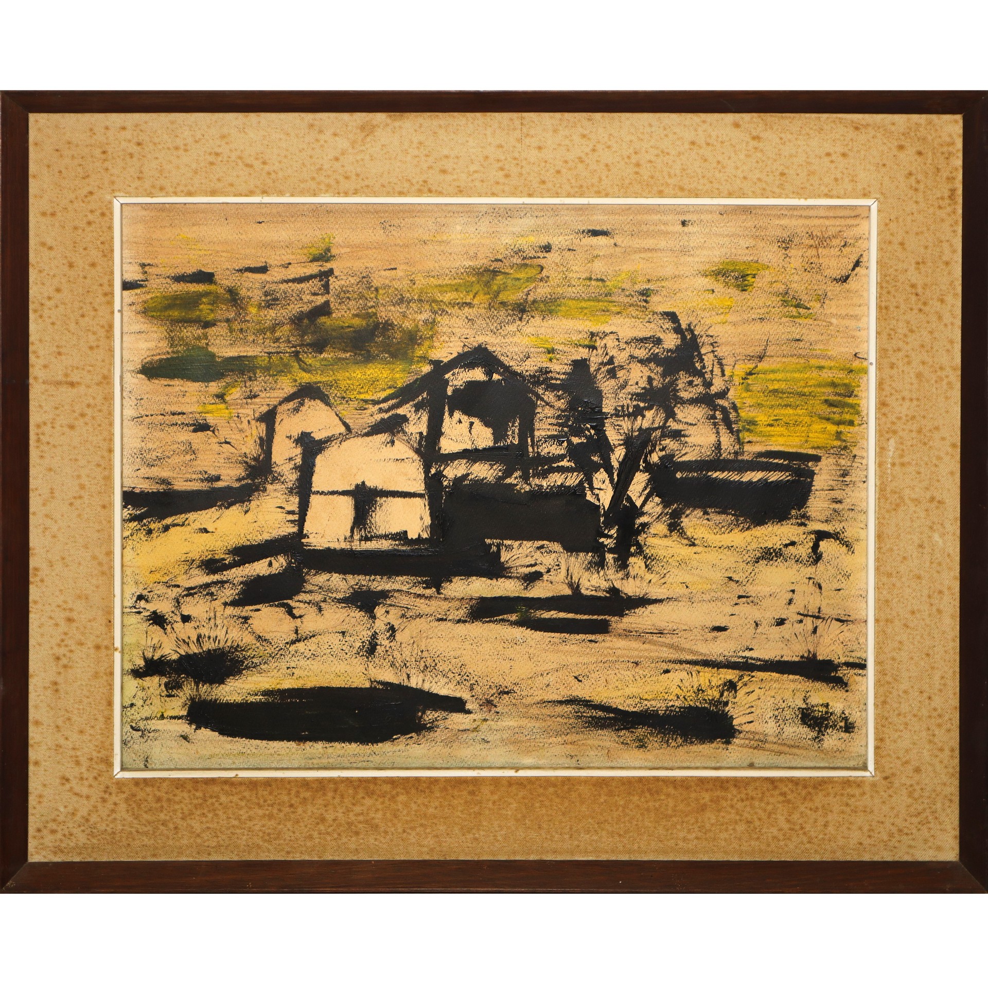Domenico Girbino (Bronte 1935-Catania 2013) - Case con barca H cm 37x49 - in cornice H cm 52x64 Tecnica mista Firmata in alto a destra Mimmo Girbino