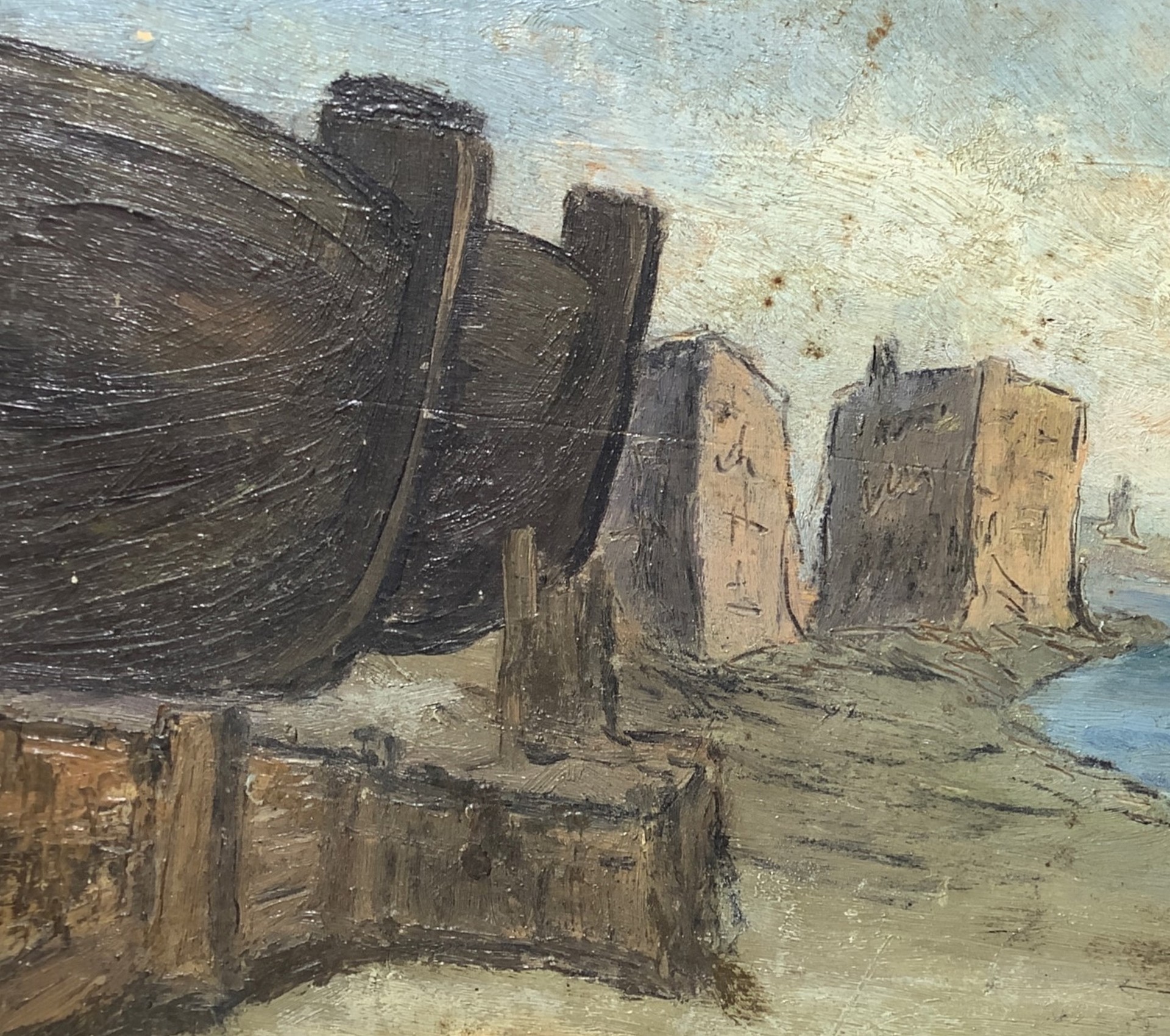 Paesaggio con cantiere navale Cm 22x21 Olio su tavola