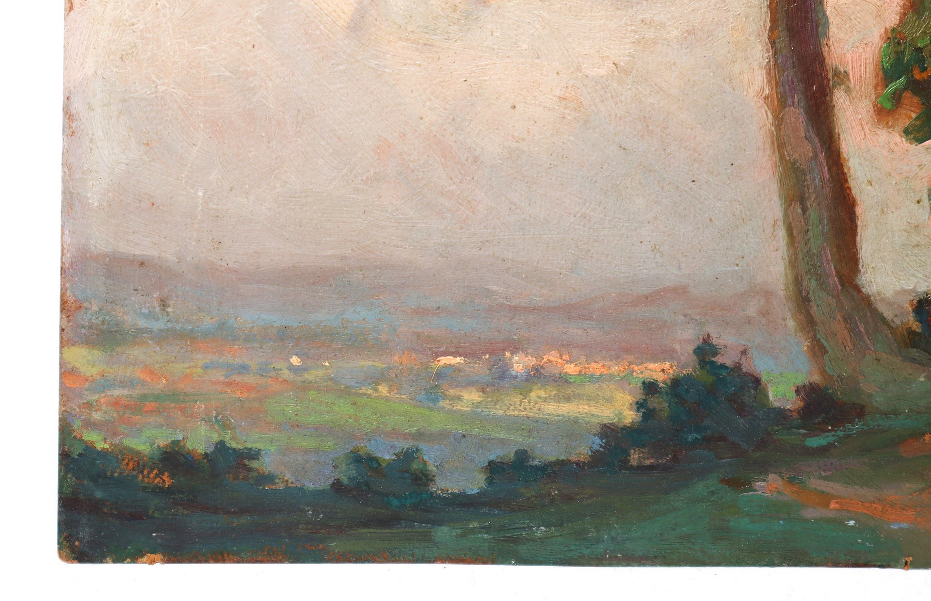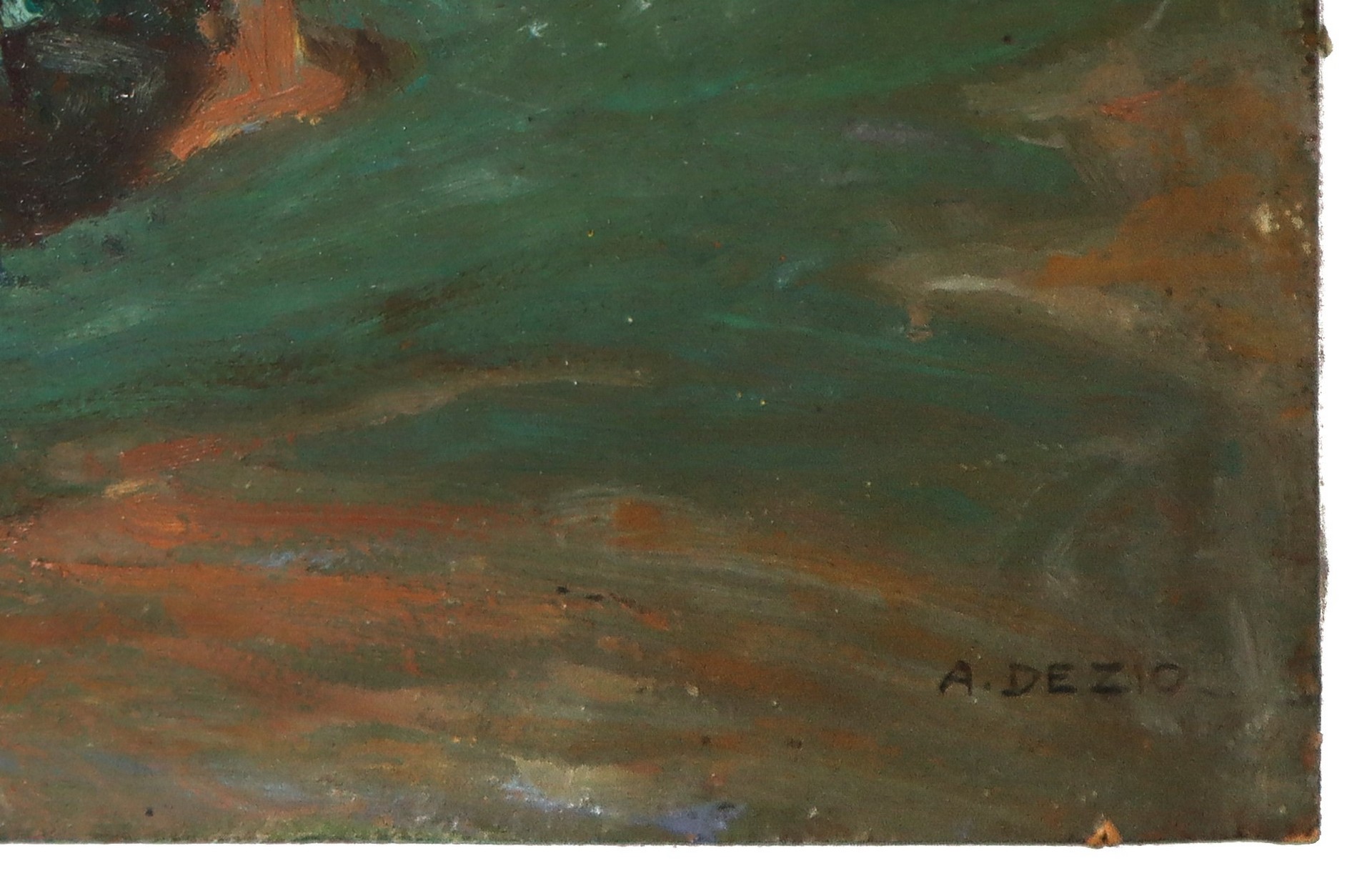 Paesaggio con coppia sotto gli alberi, primi 20th secolo cm 35 x cm 46 Dipinto ad olio su cartoncino Firmato in basso a destra Dezio, opera sprovvista di cornice.
