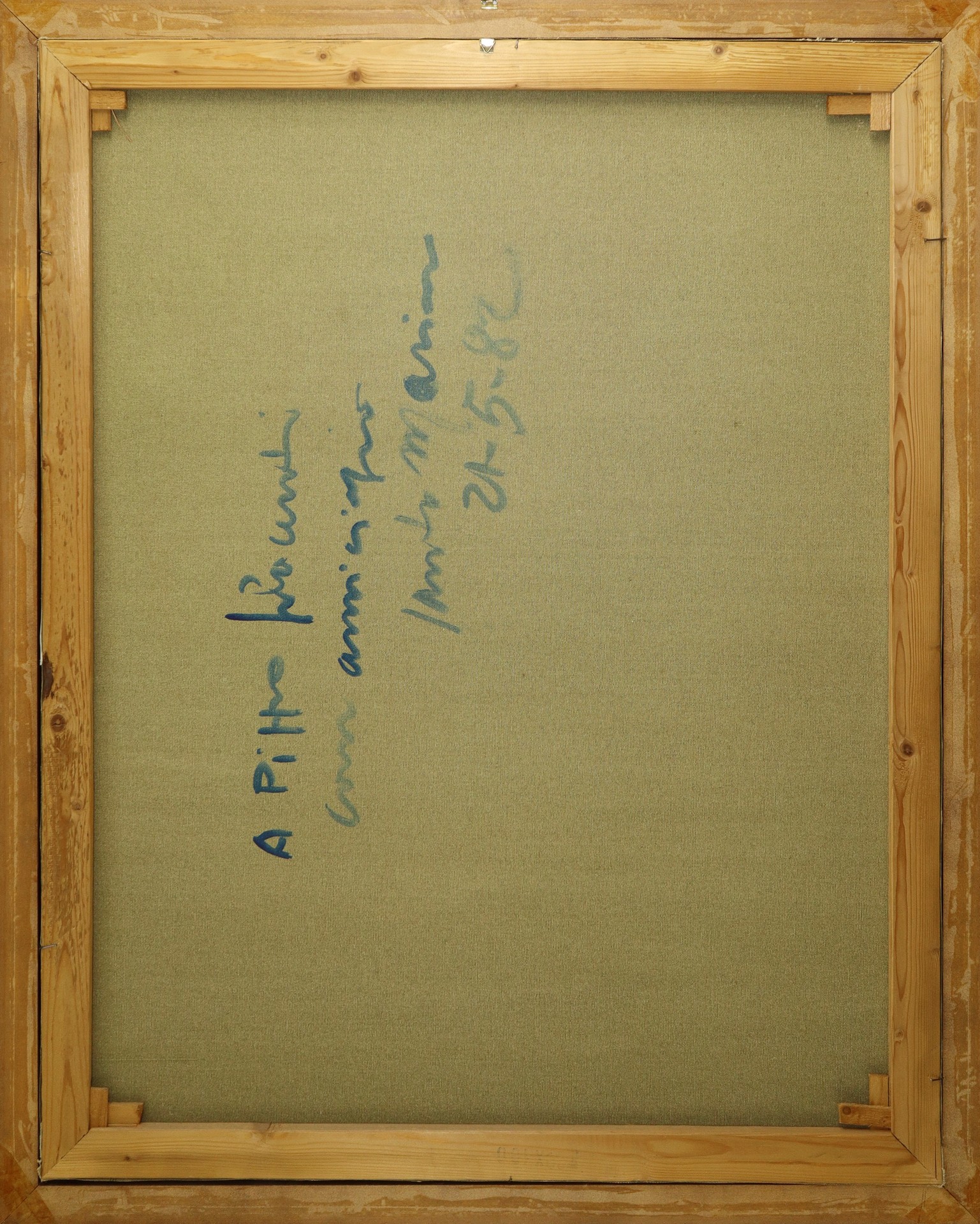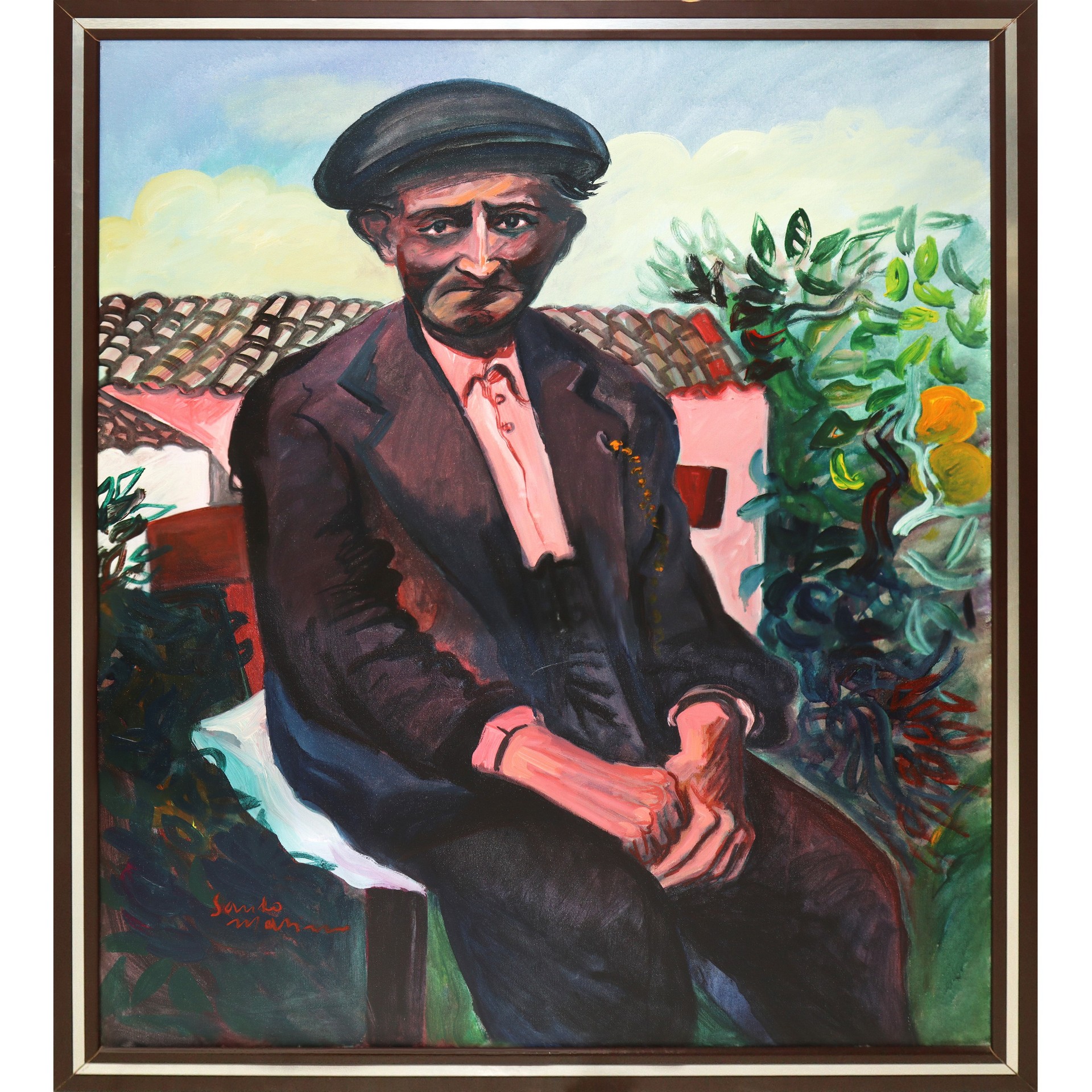 Santo Marino (Militello val di Catania 1924-1991) - Ritratto di uomo con coppola, 1982 H cm 100x80 - in cornice H cm 108x88 Olio su tela Firmato in basso a sinistra. Al retro titolato e datato 82