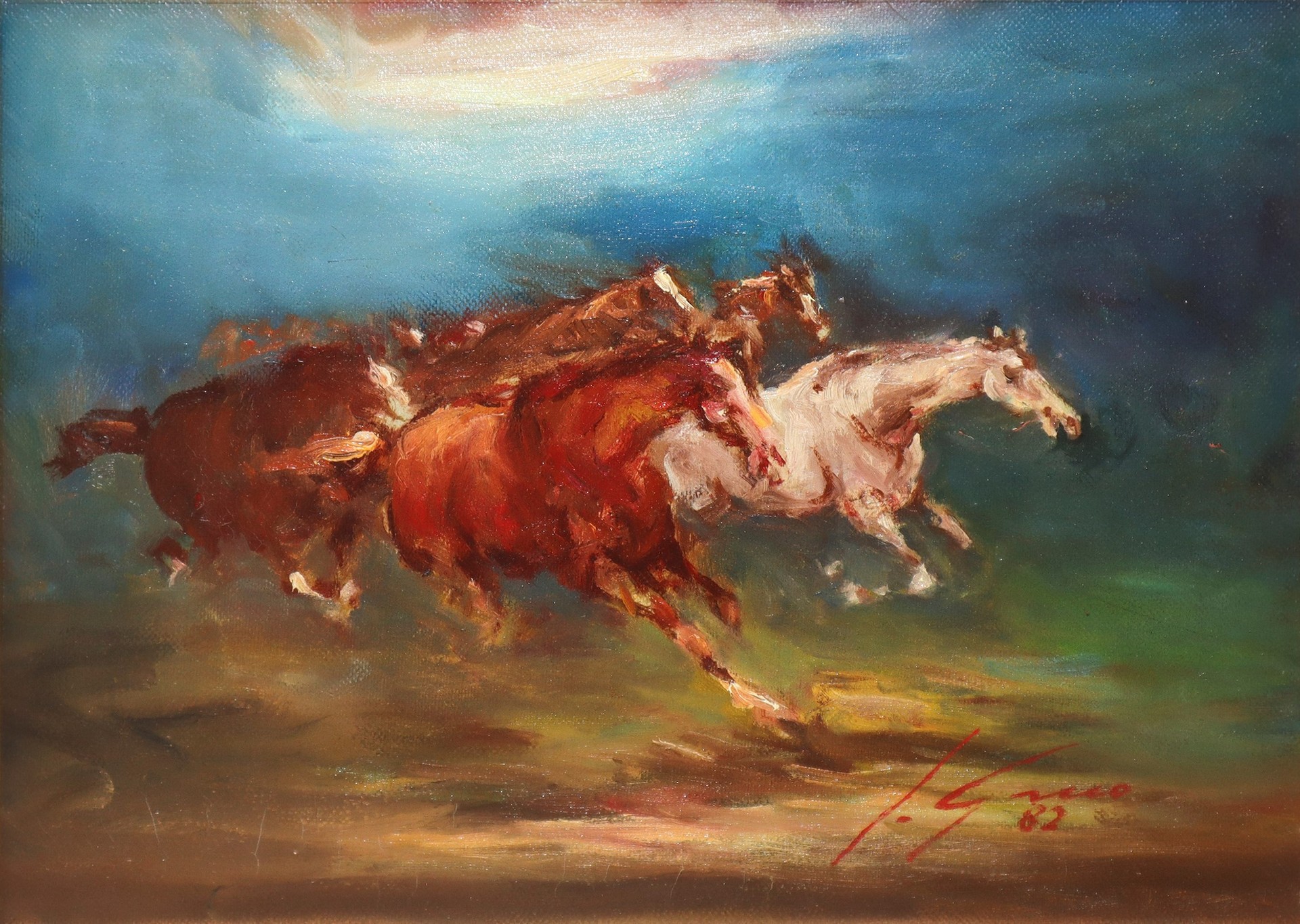 Cavalli, 1982 cm 30x40 in cornice cm 58x67 Firmato e datato in basso a destra L. GrecoFirmato e datato in basso a destra L. Greco