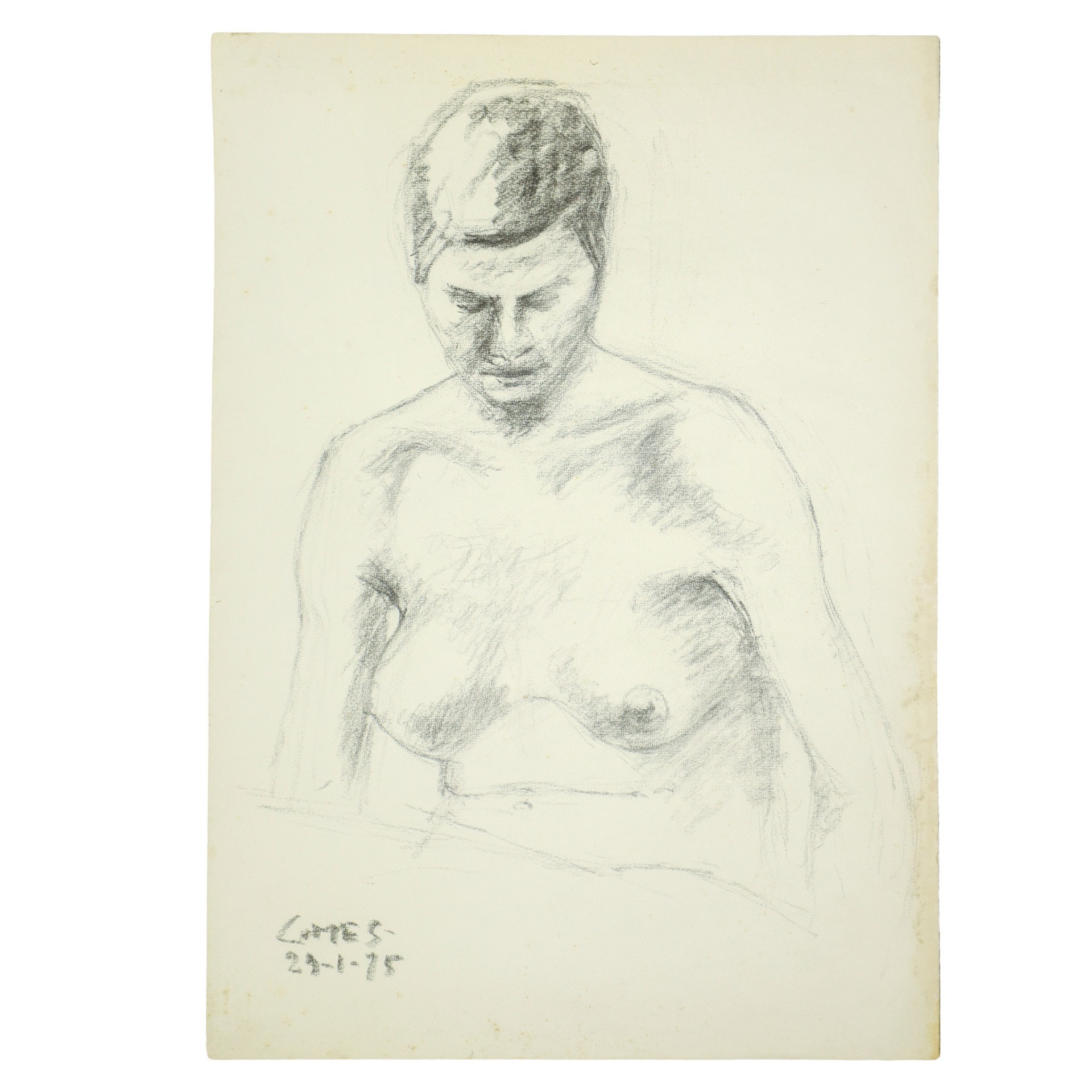 Carmelo Comes (Catania 1905-Catania 1988) - Nudo di donna a mezzo busto, 01/29/1975 H cm 66x48 Disegno a carboncino Firmato in basso a sinistra e datato