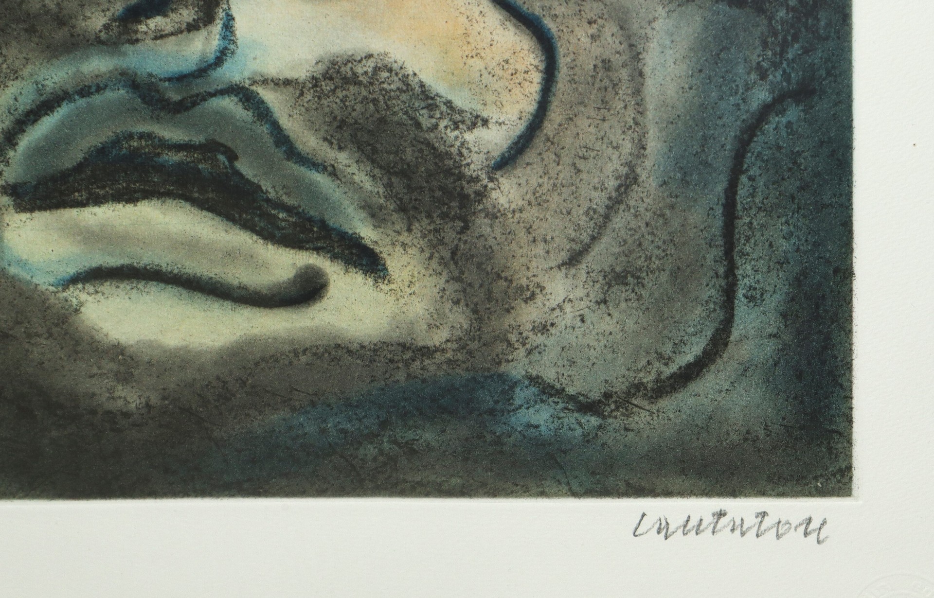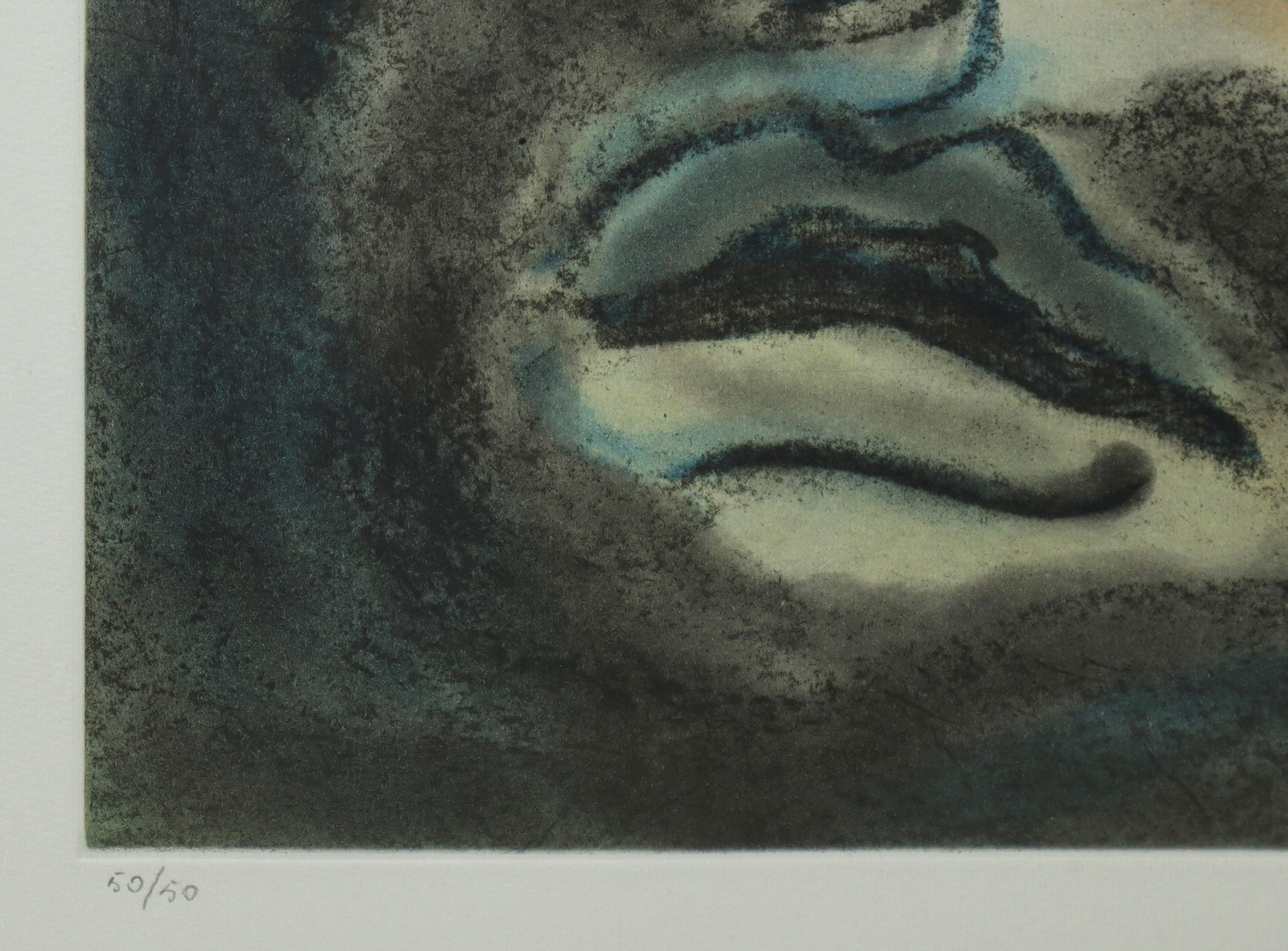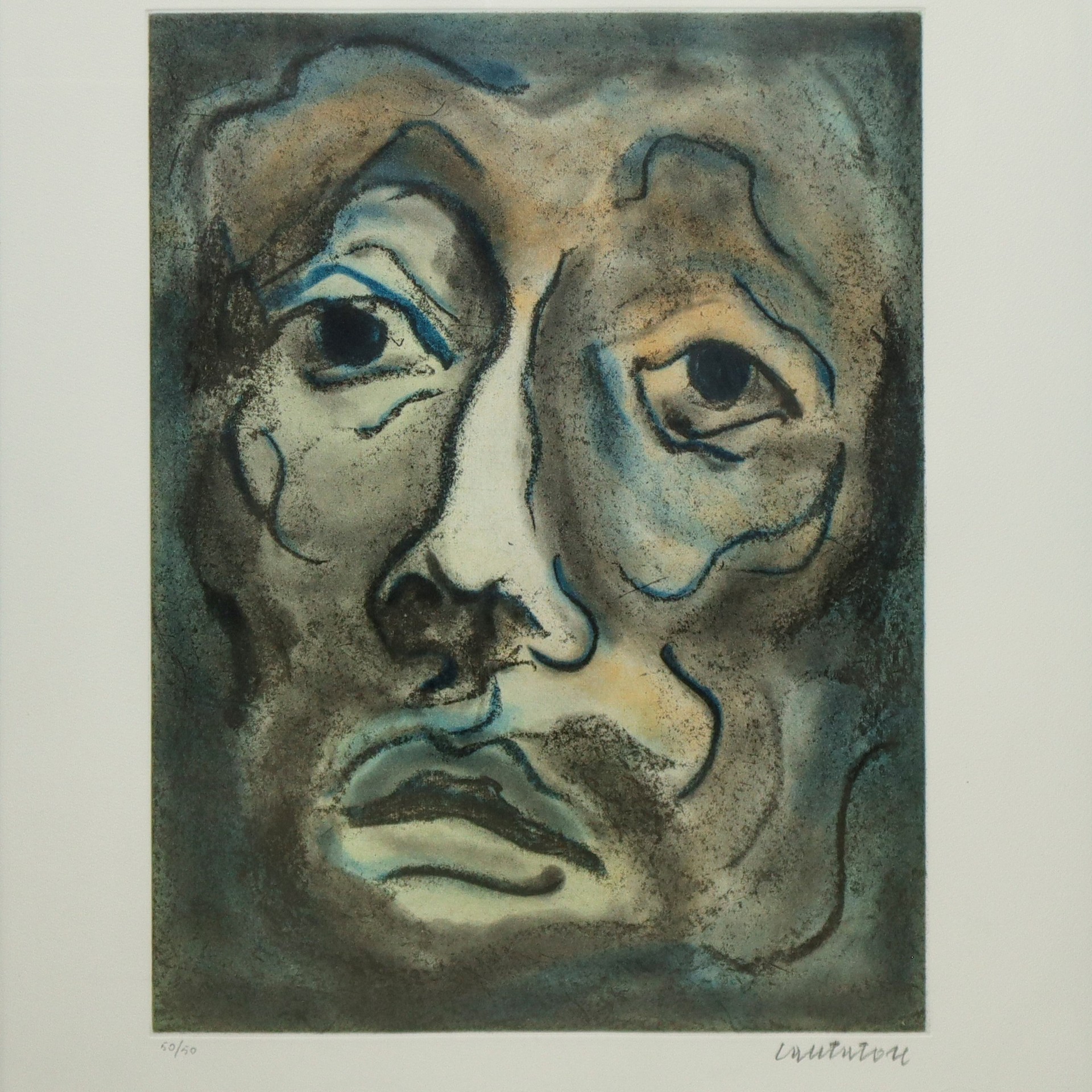 Domenico Cantatore (Ruvo di Puglia 1906-Parigi, Francia 1998) - Volto di uomo H cm 55x43 - in cornice H cm 62,5x50,5 acquatinta 50/50, al fronte in basso a sinistra. Firmato al fronte in basso a destra.