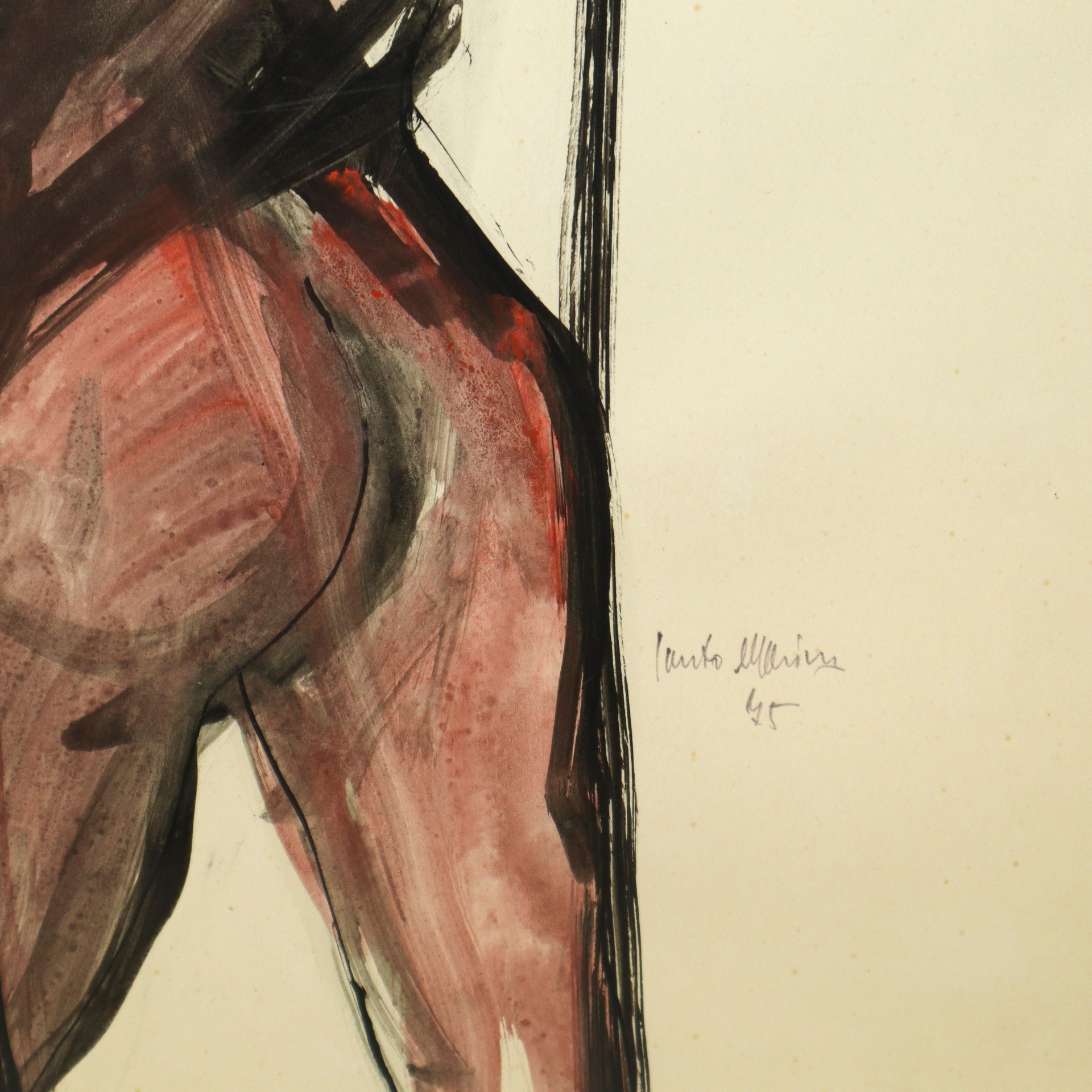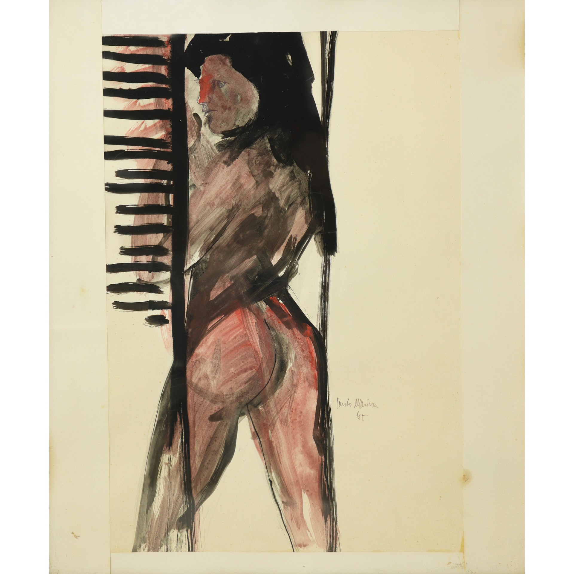 Santo Marino (Militello val di Catania 1924-1991) - Nudo di donna in piedi, 1975 H cm 44x30 - in cornice H cm 55x46 Tecnica mista Firmato sul lato destro e datato