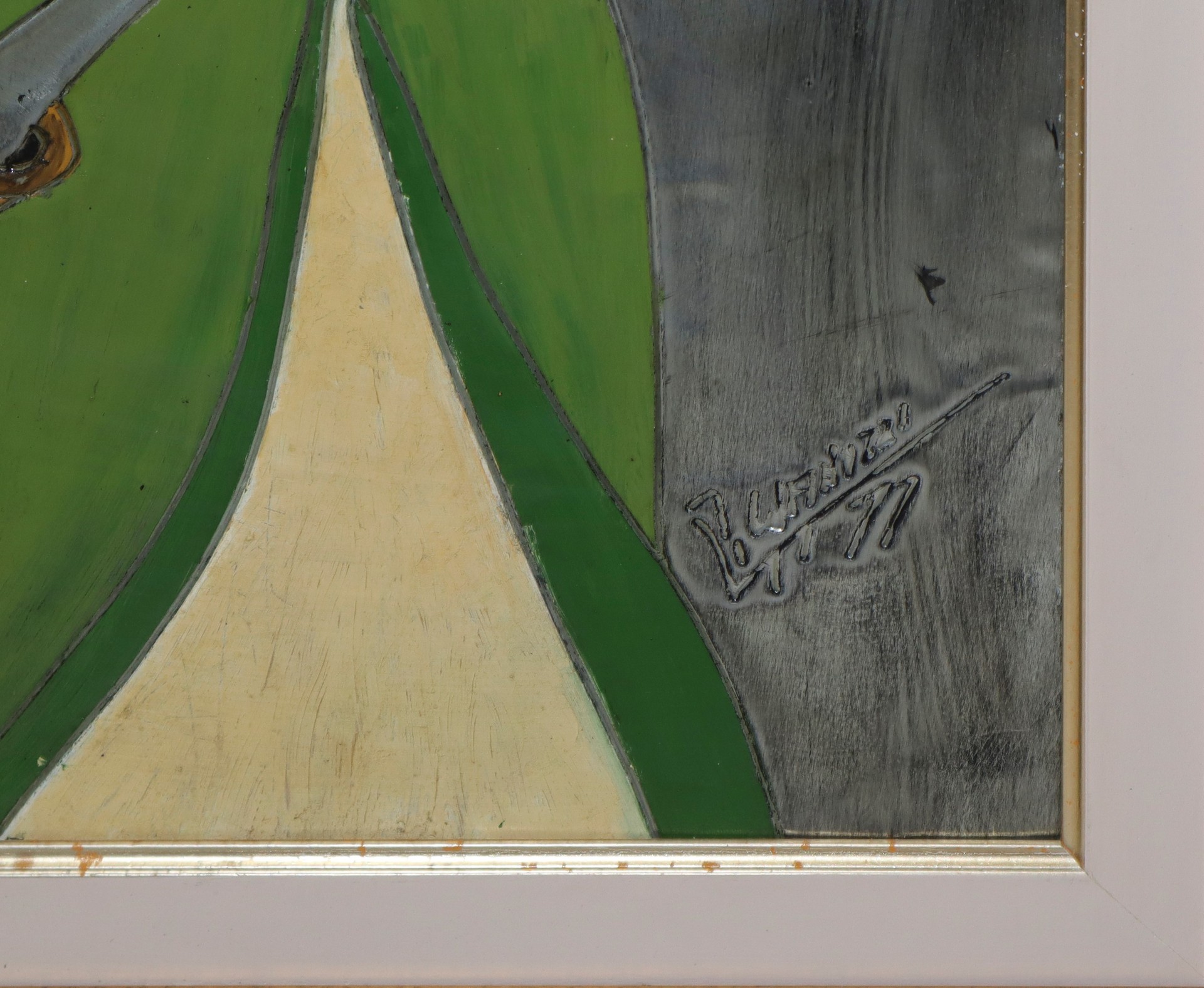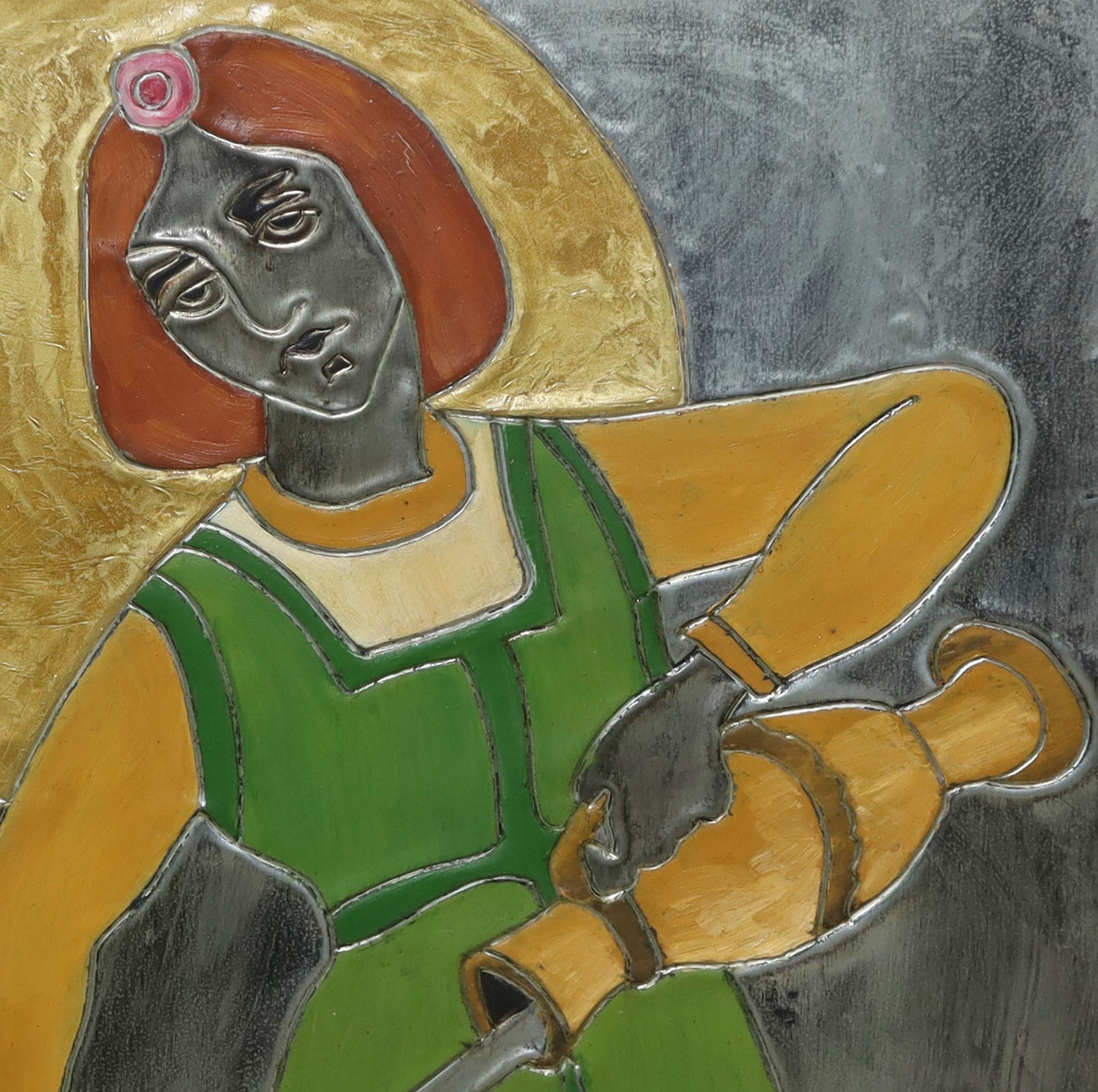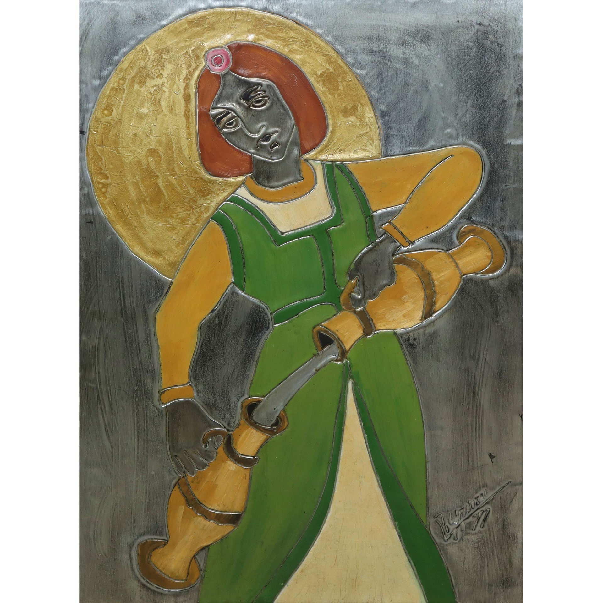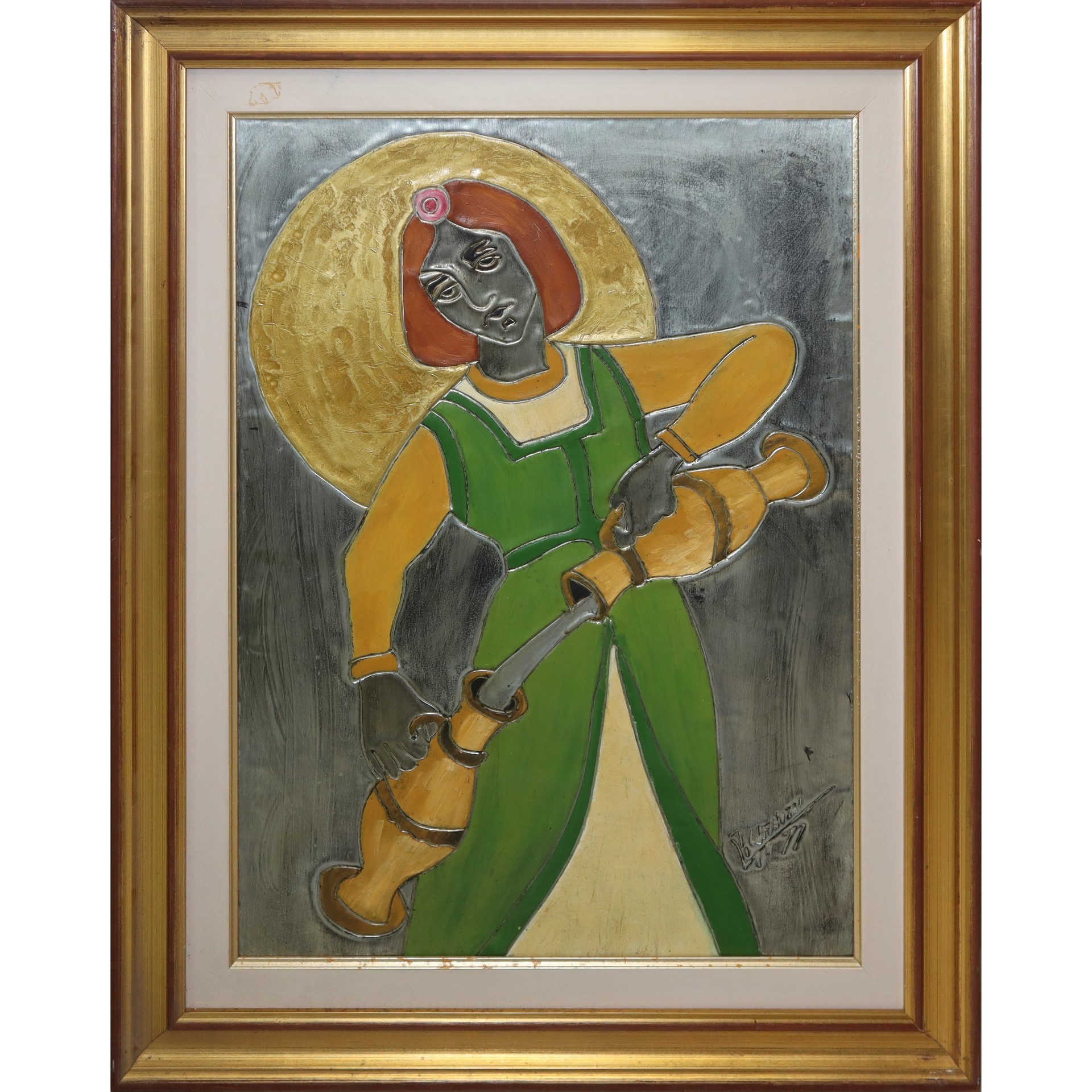 Piero Gianuzzi (1937-1996) - Donna con brocche, 1978 Cm 78(h) x 58 in cornice cm 82(h) x 69 Olio su zinco Firmato in basso a destra e datato '78