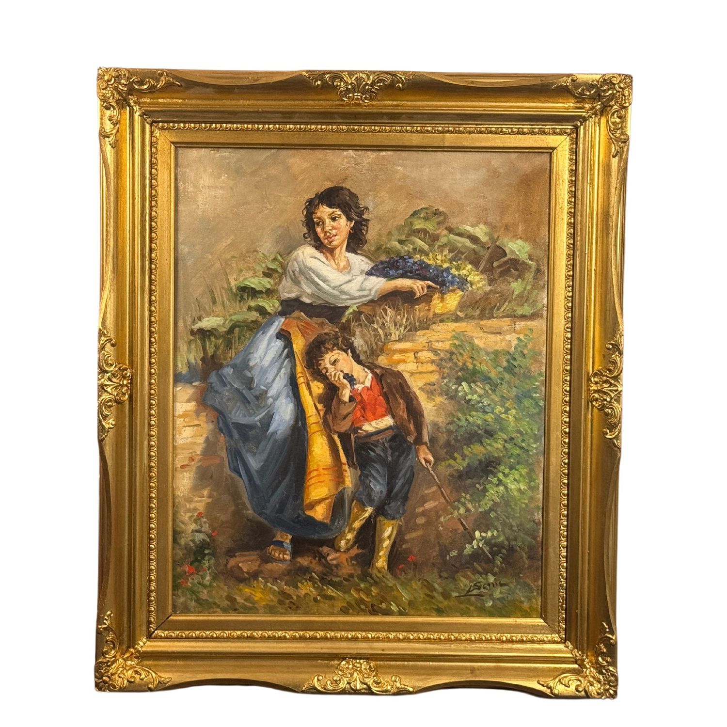 Dipinto olio su tela, periodo XX secolo scuola Italiana, raffigurante Allegoria dell'uva.