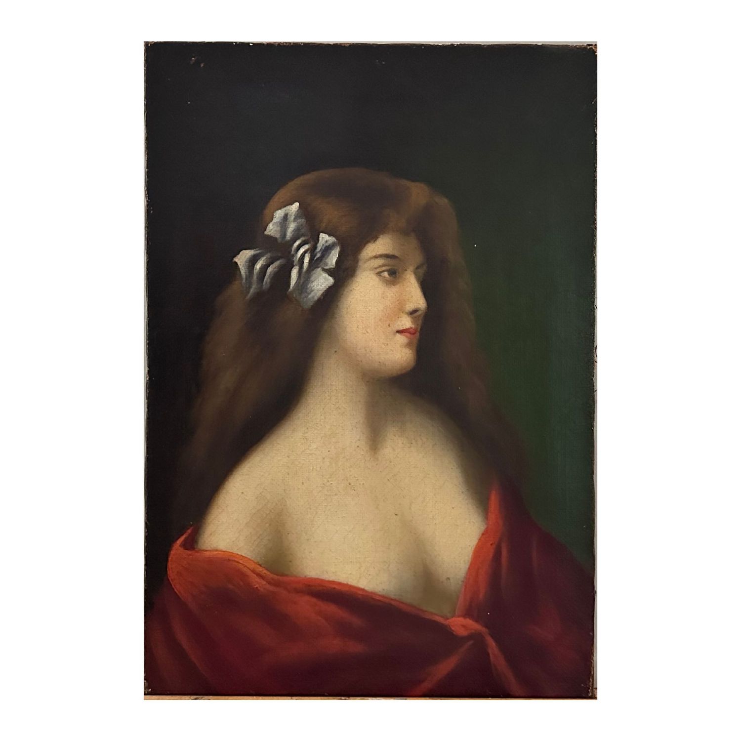 Dipinto olio su tela periodo XX secolo scuola Italiana raffigurante Ritratto di donna nella maniera di Angelo Asti.