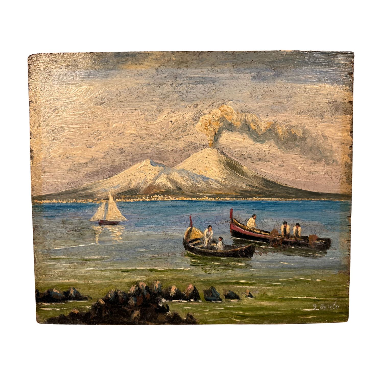 Dipinto olio su tavola, periodo XX secolo scuola Italiana, raffigurante Marina napoletana.