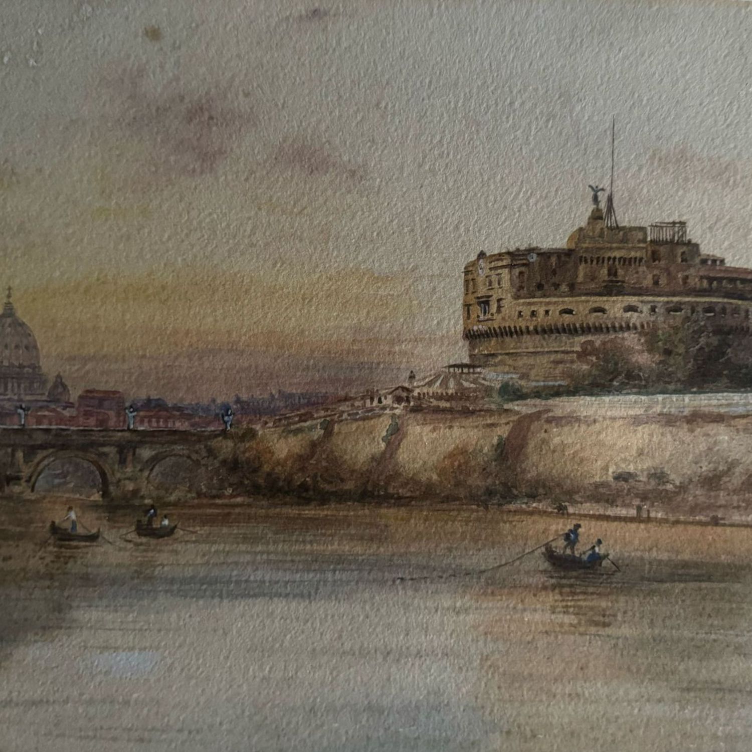 Dipinto acquerello su carta, periodo XX secolo scuola Italiana, raffigurante Roma.