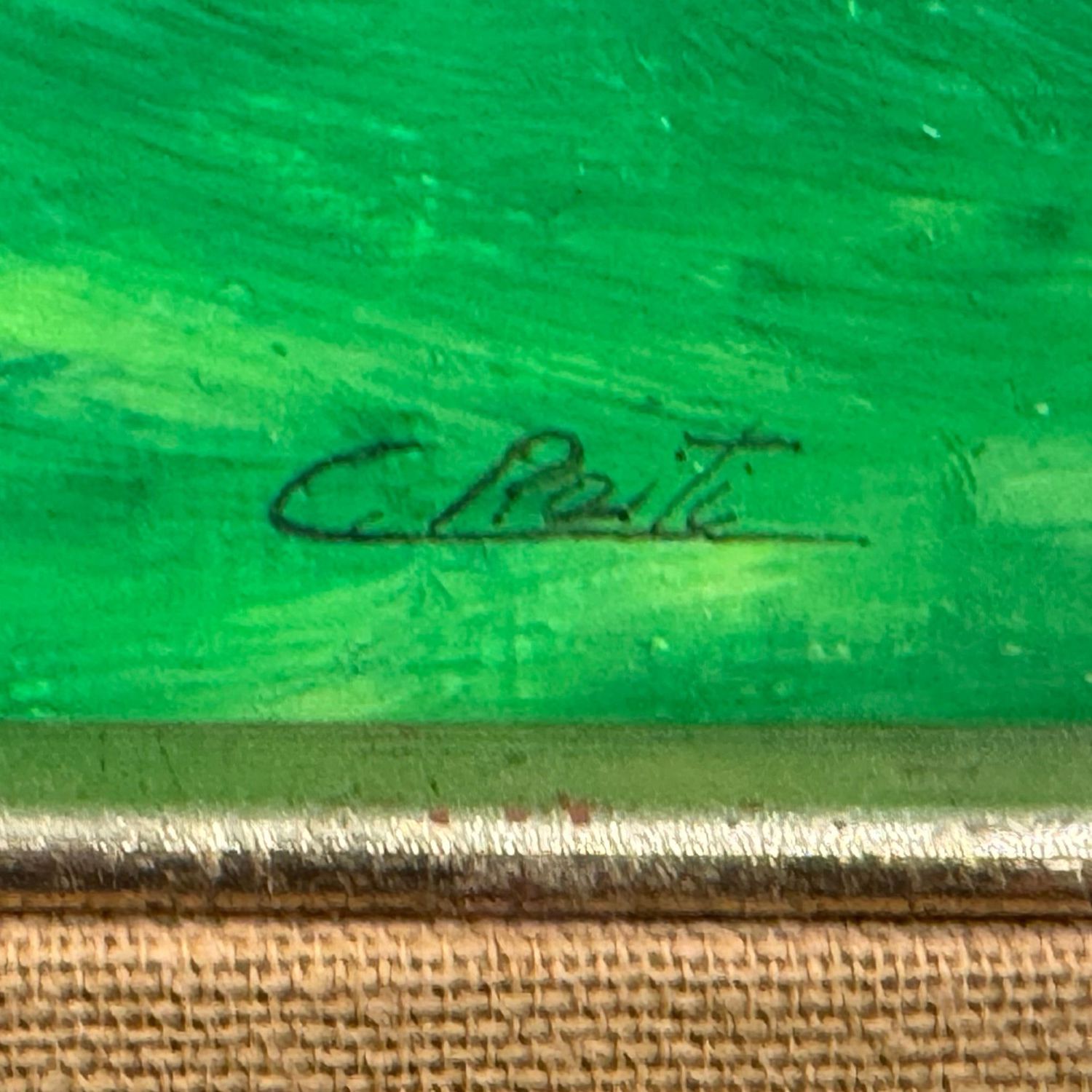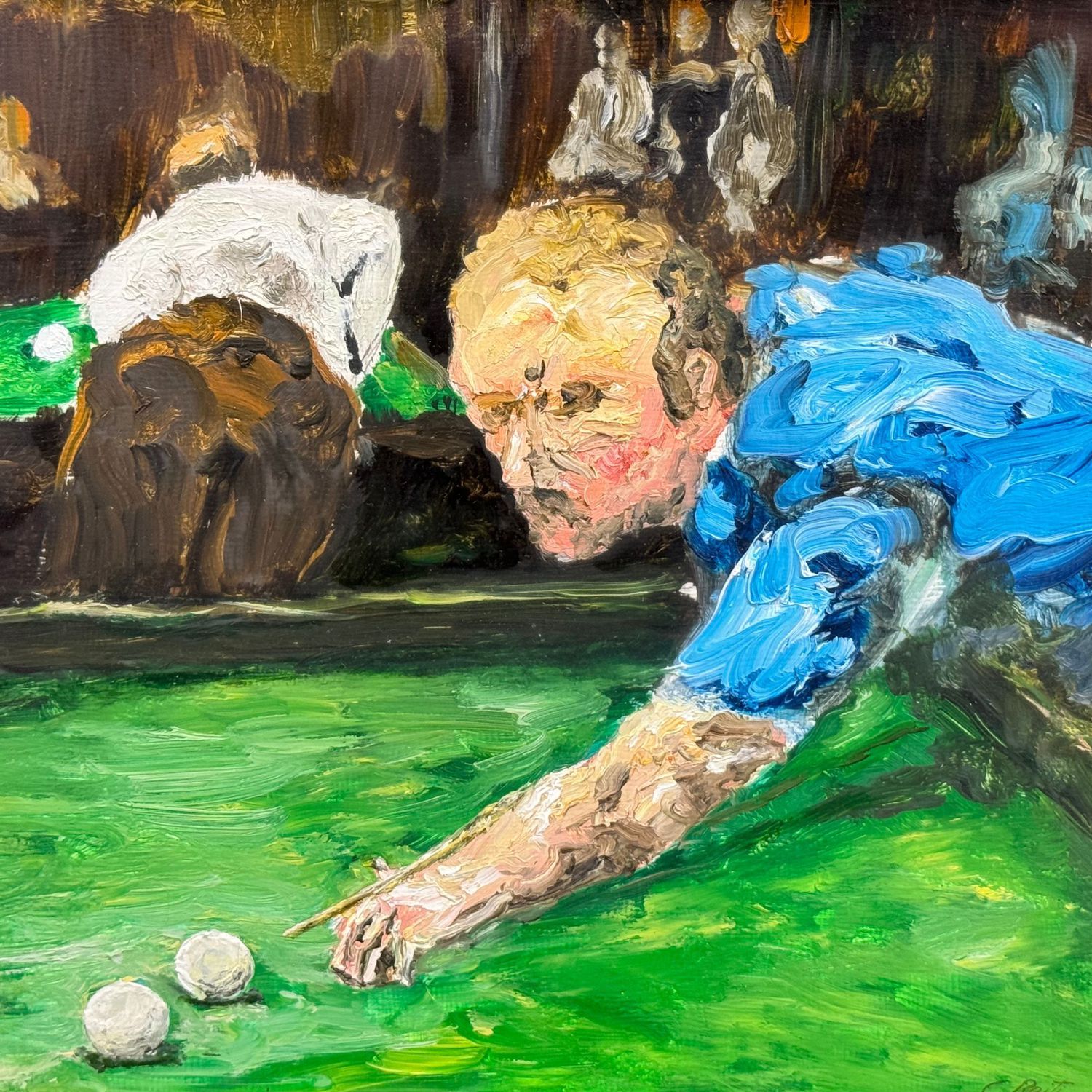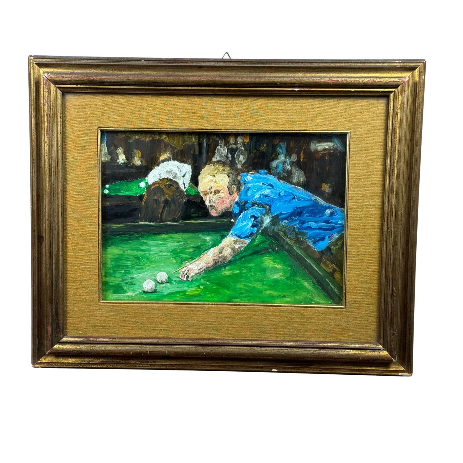 Dipinto olio su pannello, periodo XX secolo scuola Italiana, raffigurane Il giocatore di biliardo.