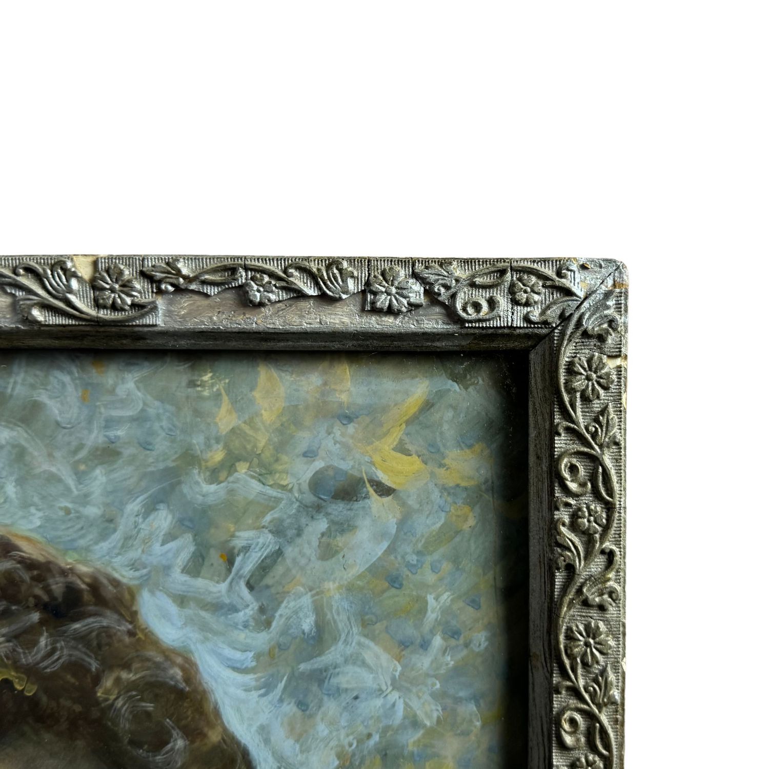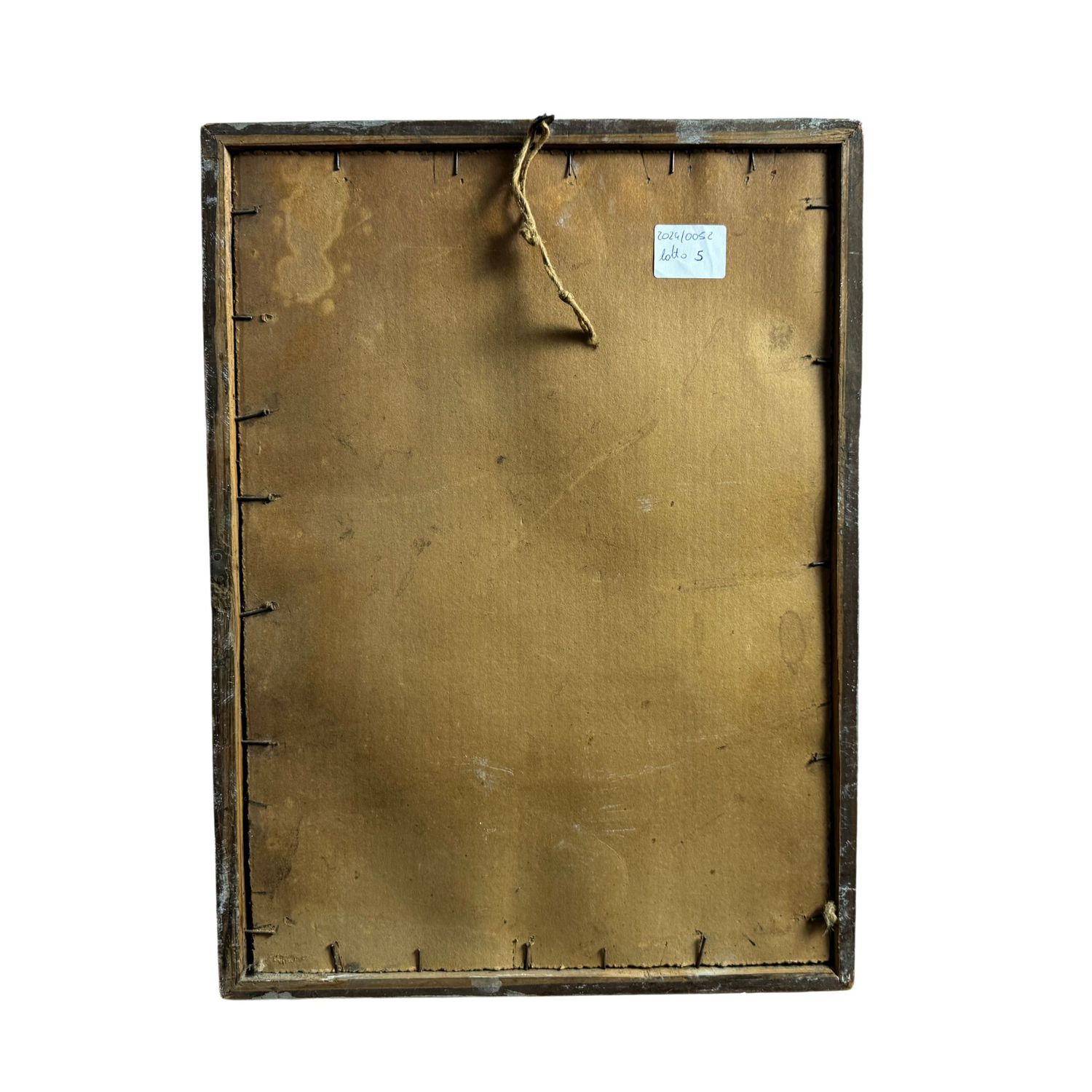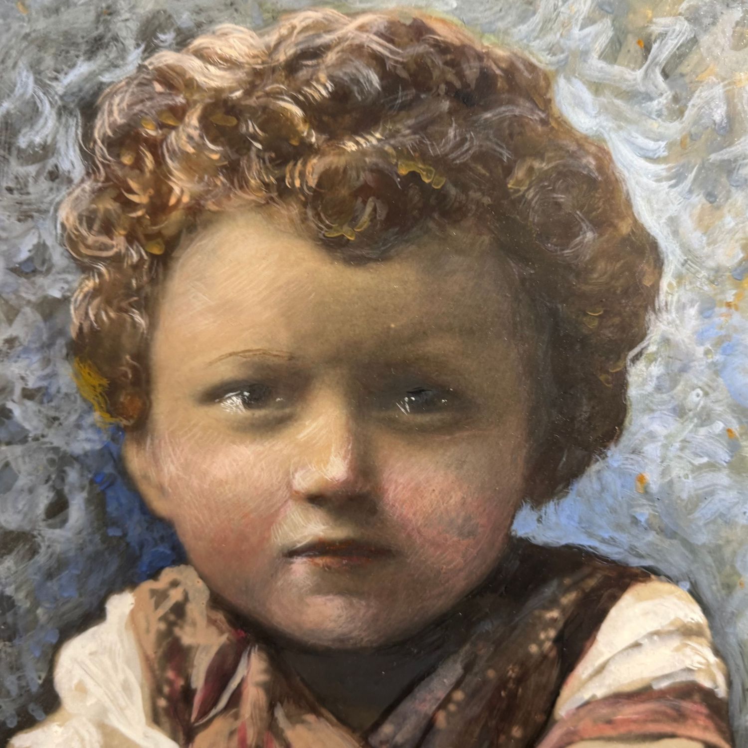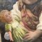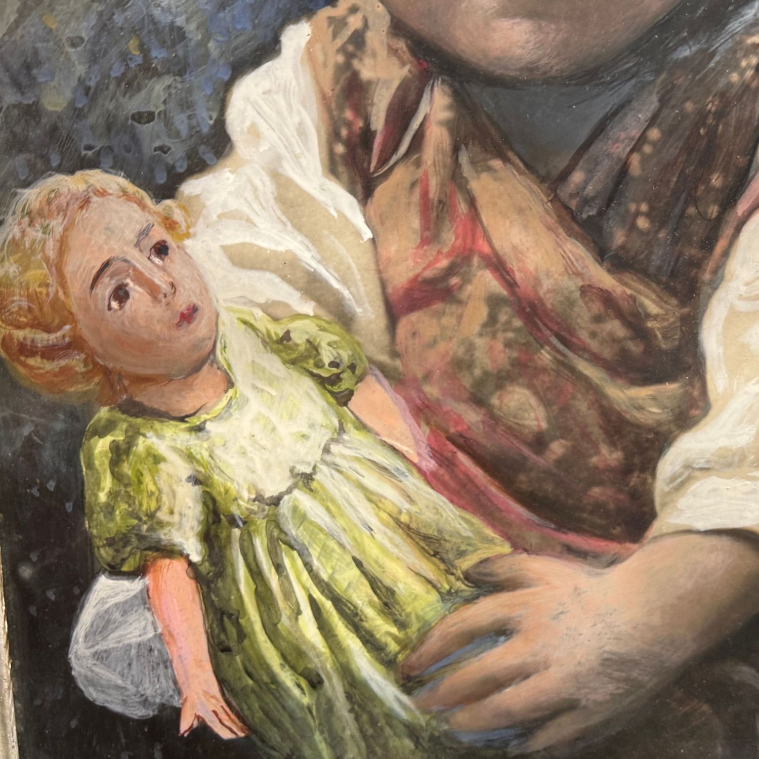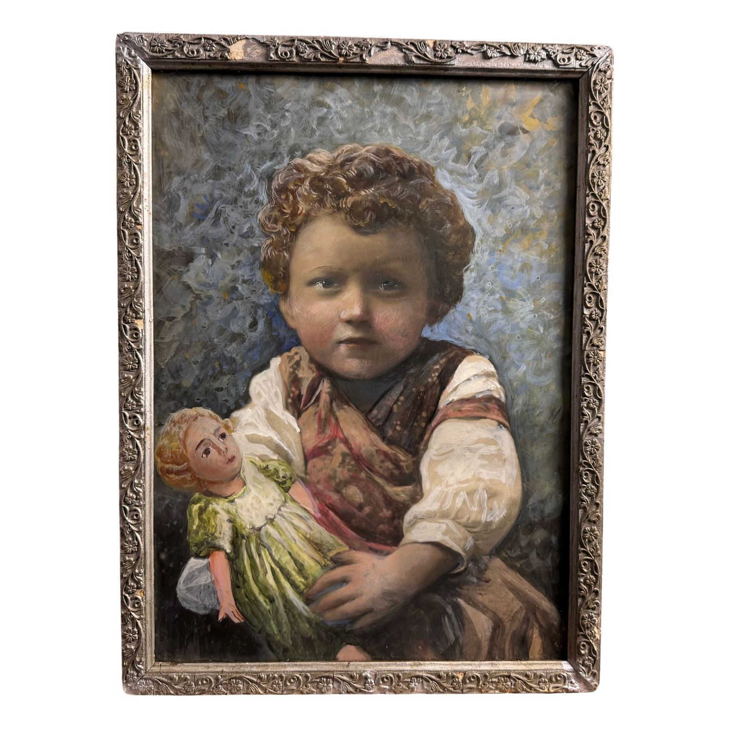 Dipinto olio su carta, periodo XX secolo scuola Italiana, raffigurante Ritratto di bambina con bambola.