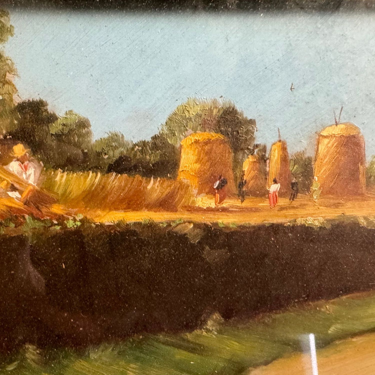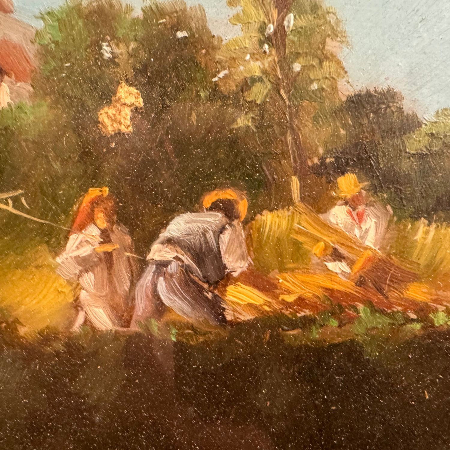 Dipinto olio su pannello, periodo inizio XX secolo scuola Italiana, raffigurante Contadini.