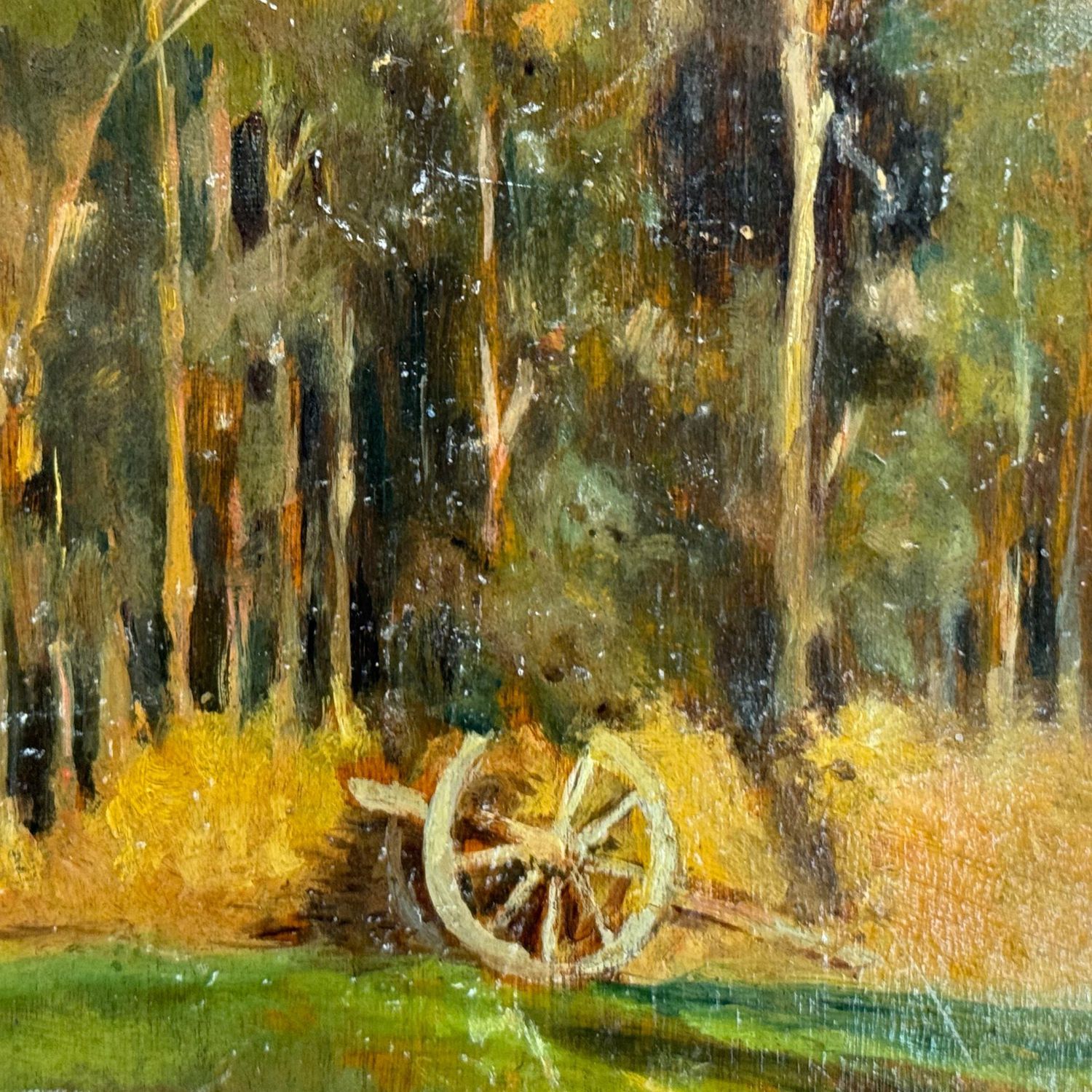 Dipinto olio su tavoletta, periodo XX secolo scuola Italiana, raffigurante Paesaggio con alberi.