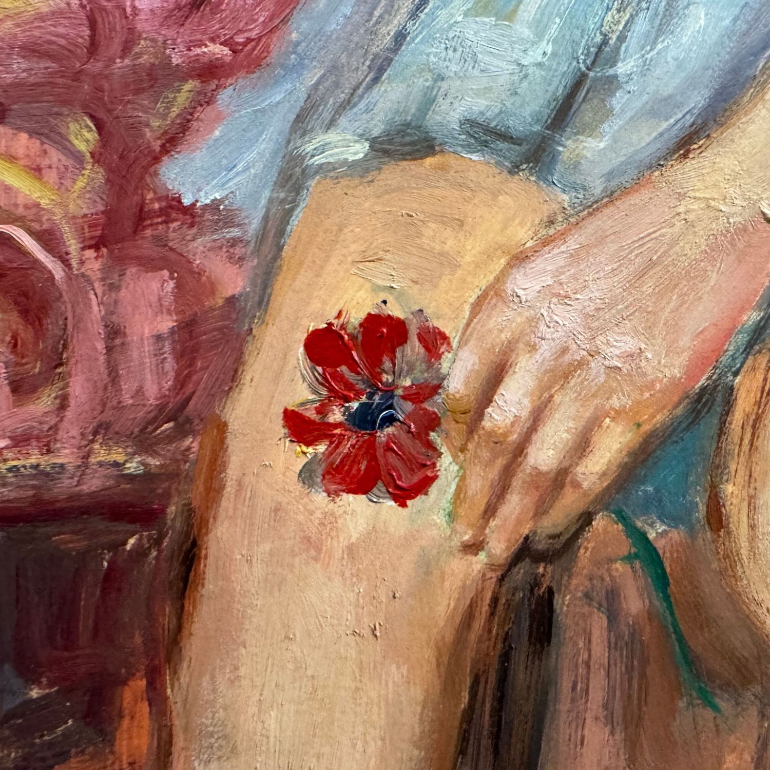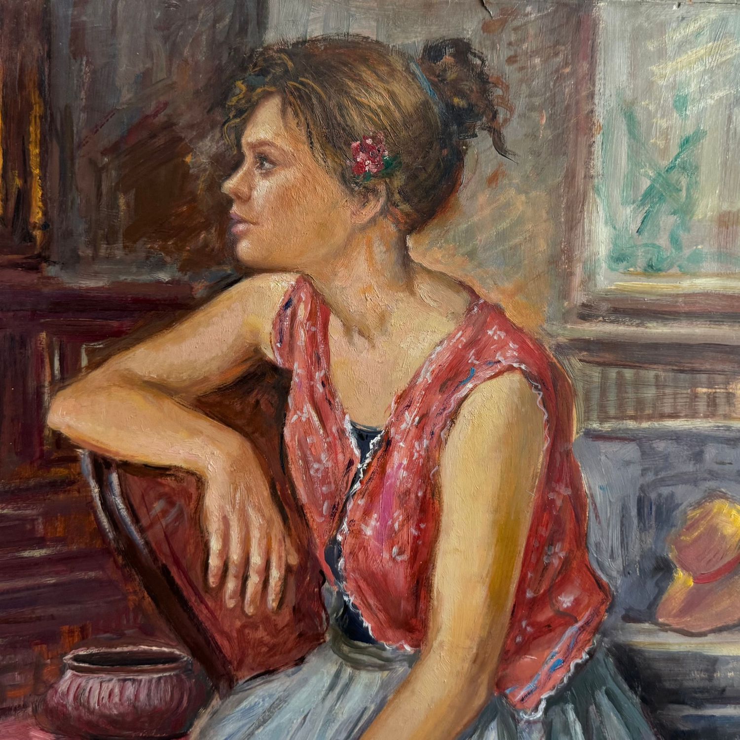 Dipinto olio su carta applicata su tela, periodo XX secolo scuola Italiana, tratta da un'opera di Antonio Bresciani, raffigurante Ritratto di ballerina.
