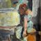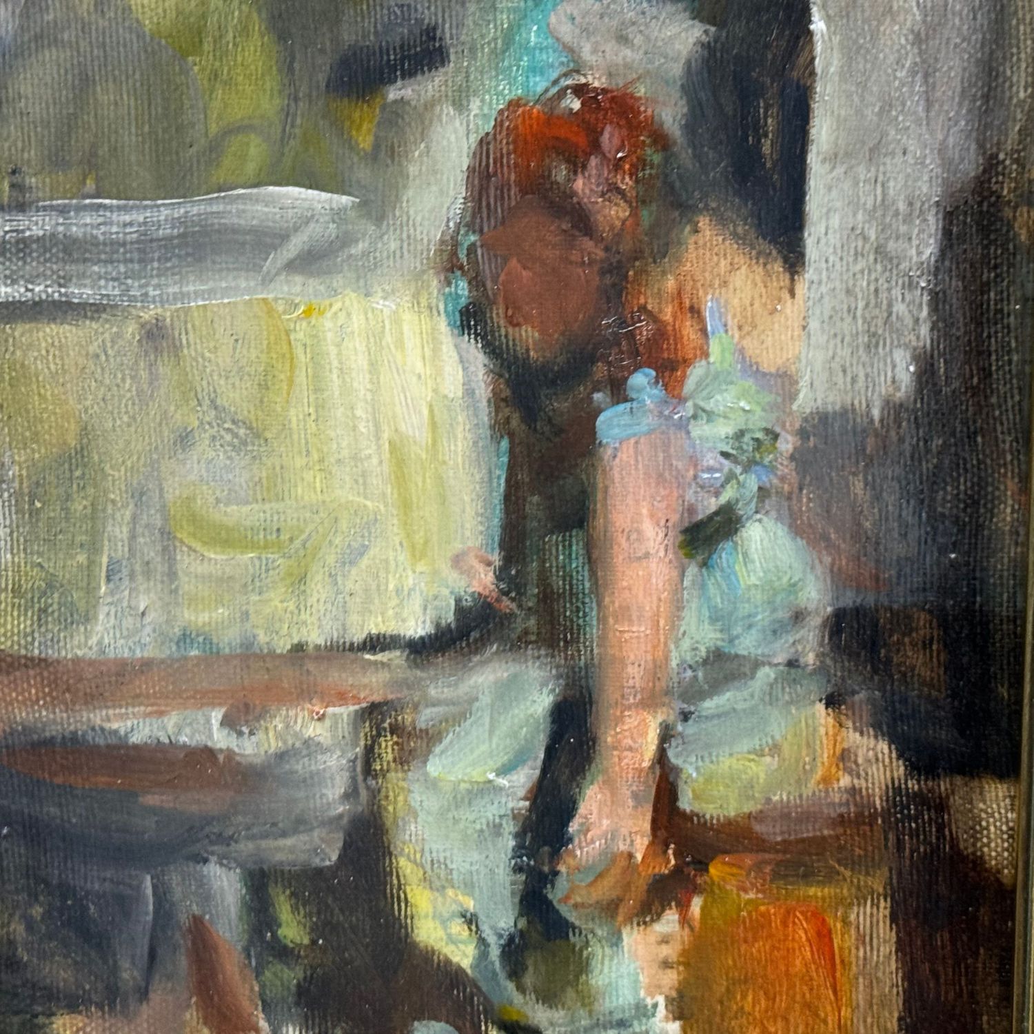 Dipinto olio su tela, periodo XX secolo artista impressionista, scuola italiana, raffigurante Ritratto di bambina di spalle.