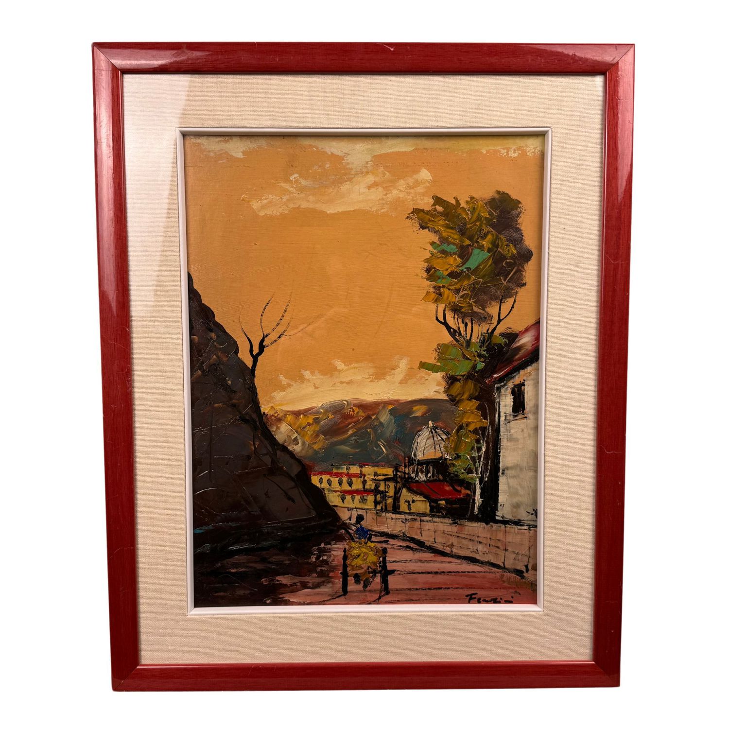 Dipinto olio su pannello, periodo XX secolo, raffigurante Luogo imprecisato.