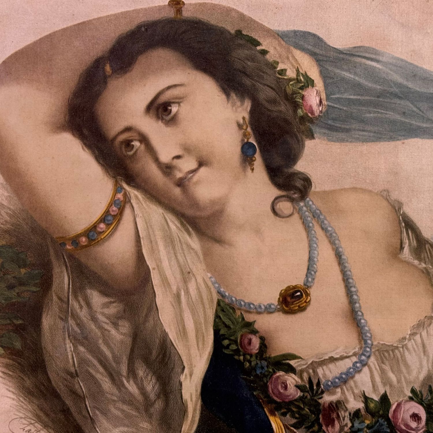 Antica litografia di scuola Italiana periodo XIX secolo, raffigurante Ritratto di donna.