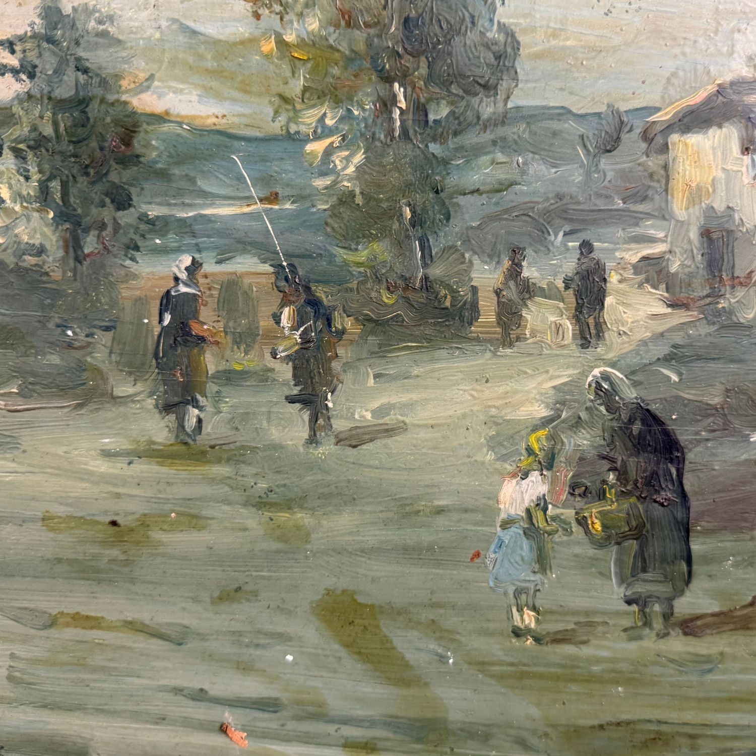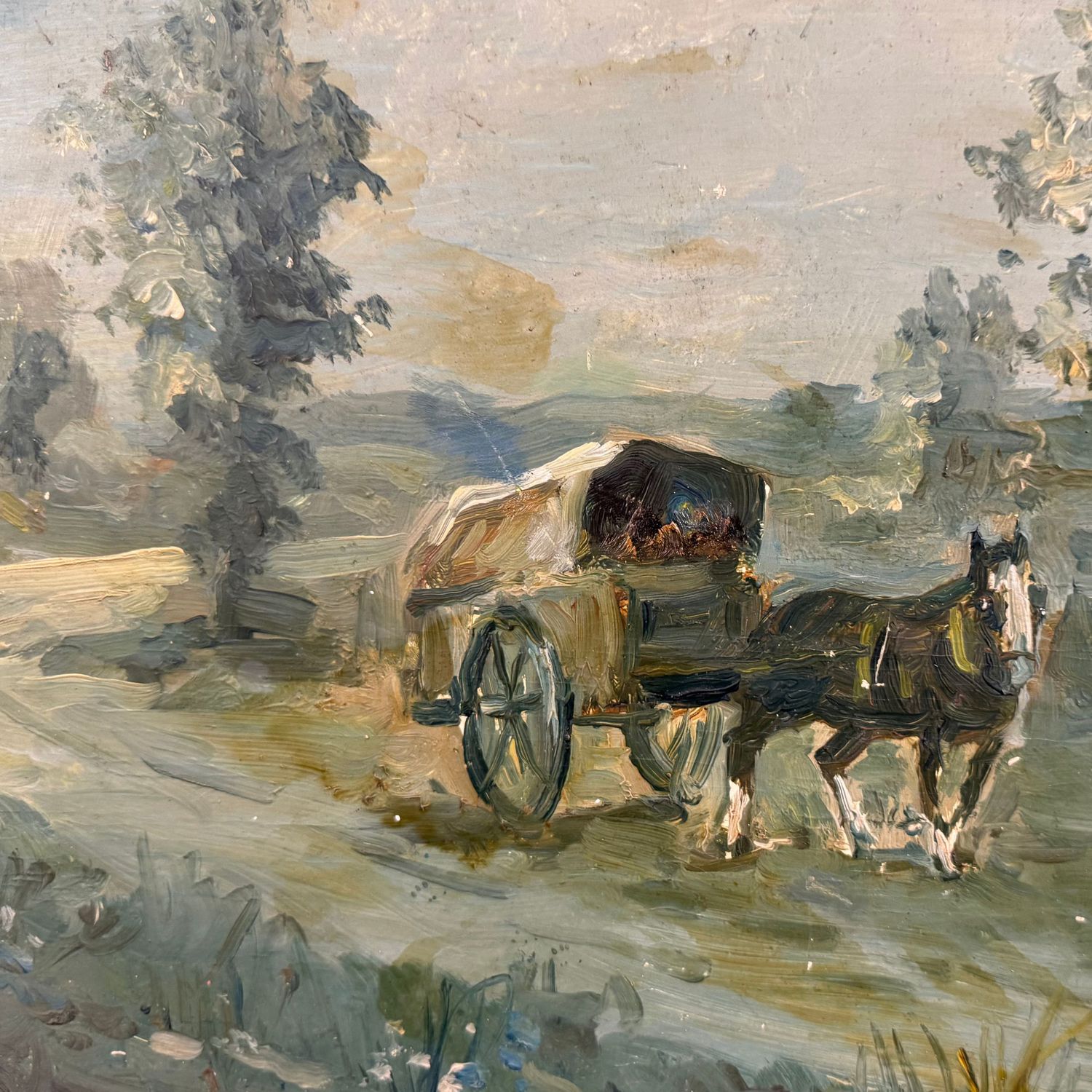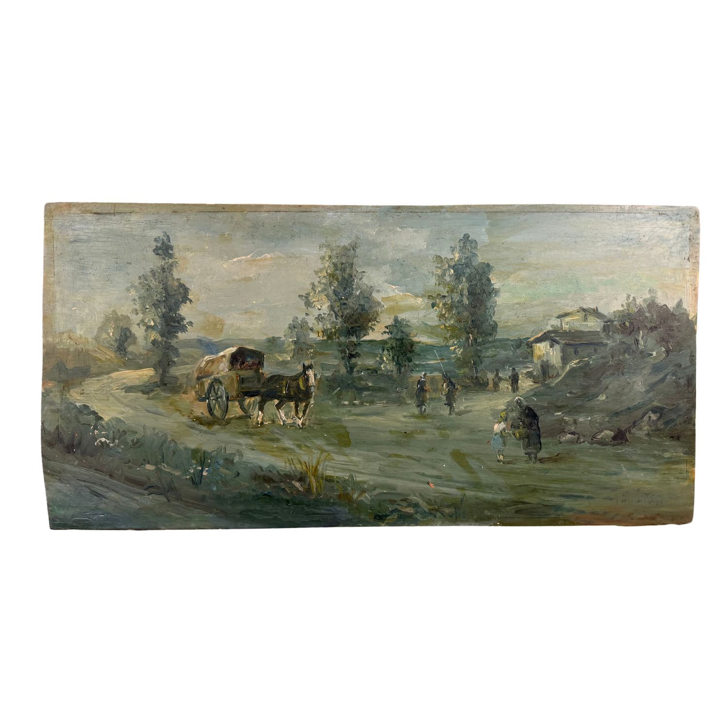 Dipinto olio su pannello, periodo XX secolo scuola Italiana, raffigurante Paesaggio di campagna.