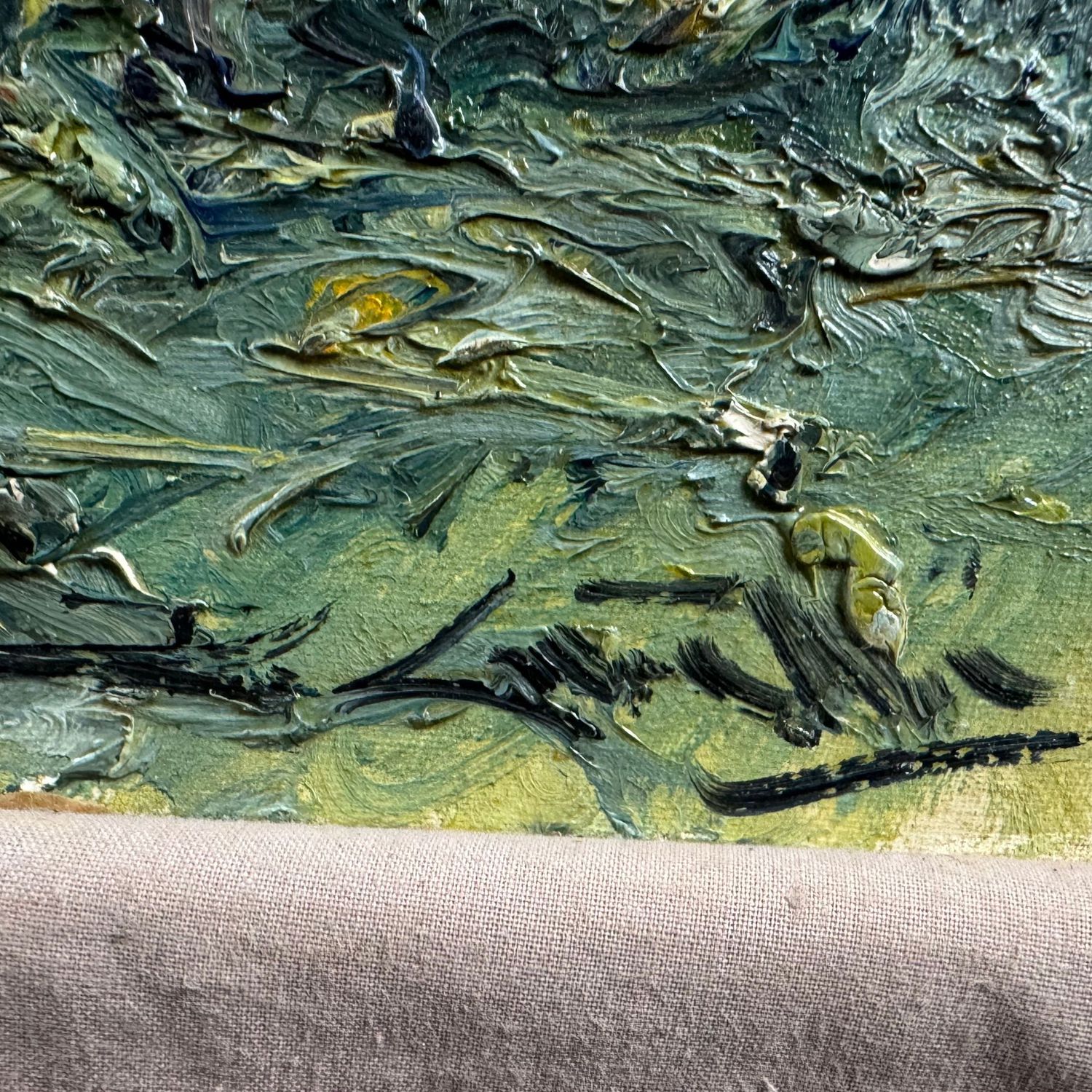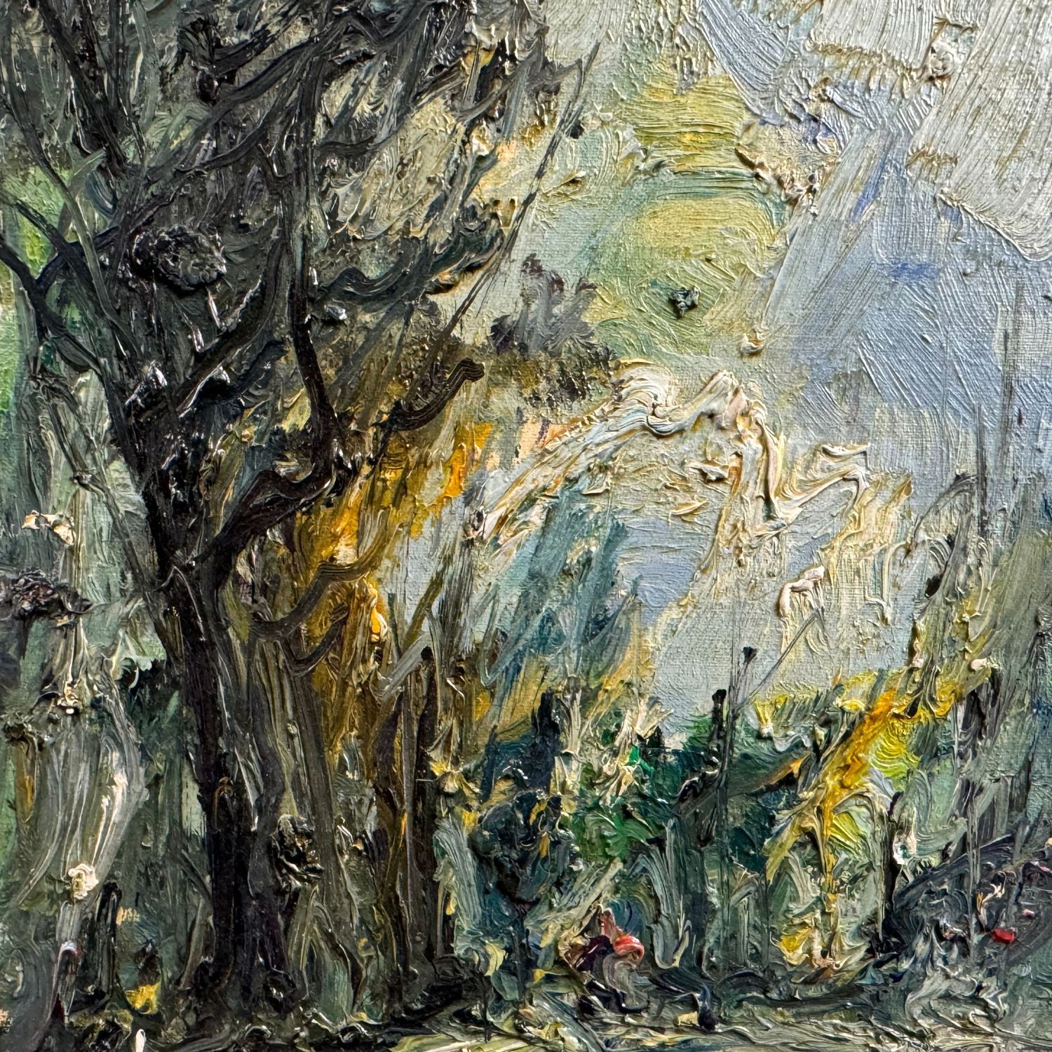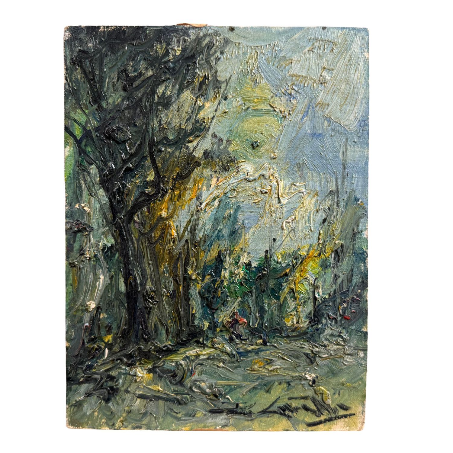 Piccolo dipinto olio su cartoncino, periodo XX secolo scuola Italiana, raffigurante "Bosco"