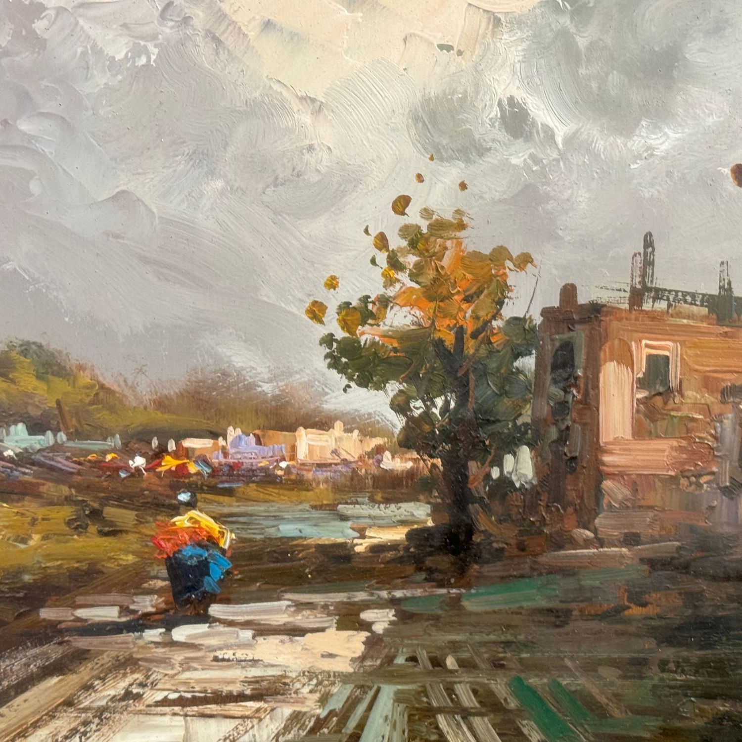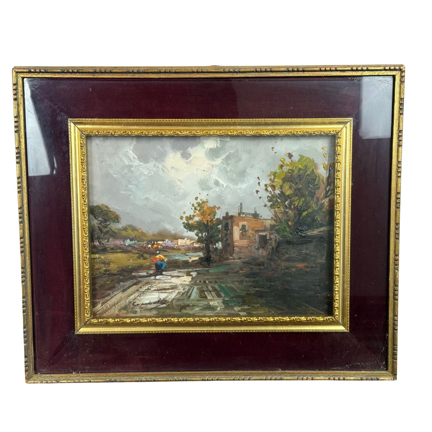 Dipinto olio su tavola, periodo XX secolo scuola Italiana, raffigurante Paesaggio di Campagna.