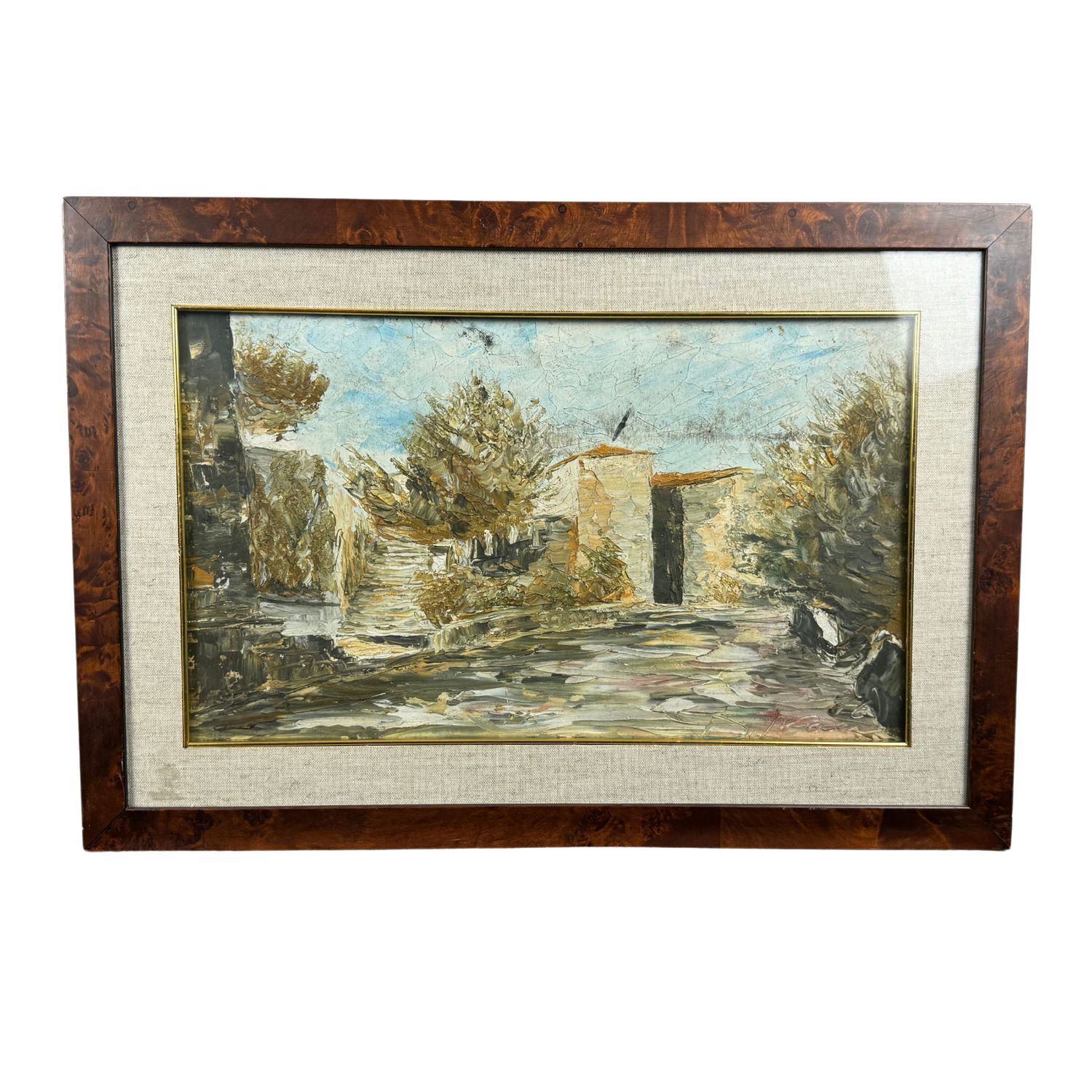 Dipinto olio su pannello, periodo XX secolo scuola Italiana, raffigurante Paesaggio di campagna.