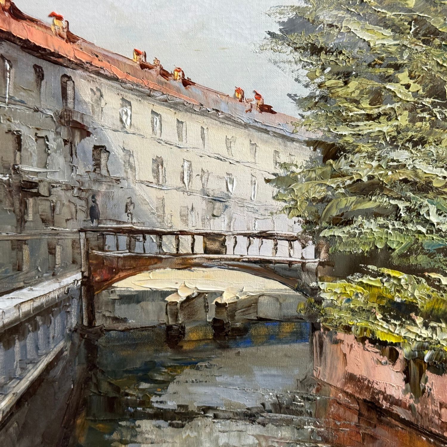 Dipinto olio su tela, periodo XX secolo scuola Italiana, raffigurante Milano.