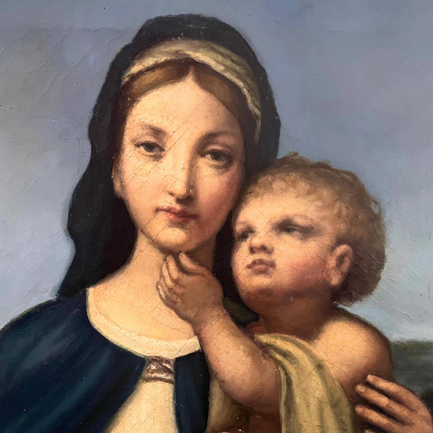 Dipinto olio su tela, raffigurante Vergine e Bambino. XX secolo (Accademico)