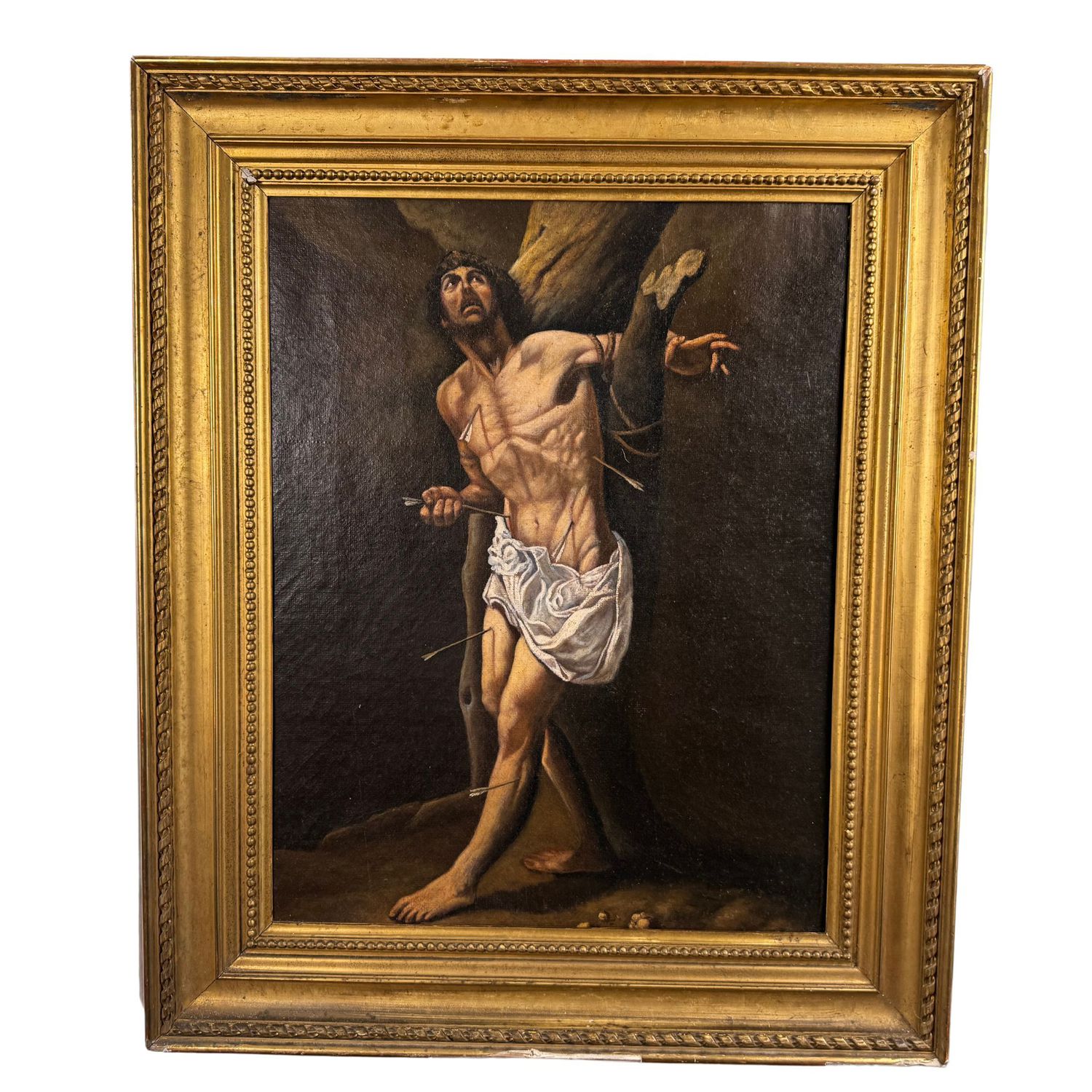 Dipinto olio su tela, periodo XIX secolo scuola Italiana, raffigurante San Sebastiano.