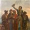 Dipinto olio su tela raffigurante Scena partenza dei pescatori.