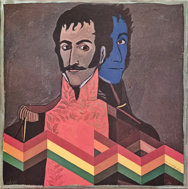ORTEGA JOSE' Spagna 1921 - Parigi 1990 "Senza titolo" Serigrafia su cartoncino pesante cm 48x48. Firmata sul fronte in basso a destra, tiratura 33/175 a sinistra. Facente parte della raccolta "Simon Bolivar" edita da Trec.