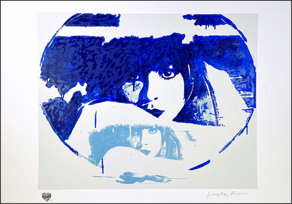 FIORONI GIOSETTA Roma 1932 "Doppio liberty blue" Serigrafia polimaterica e carborundum a 12 colori, su carta Hahnemuhle 400 gr., cm 100x70. Firmata sul fronte in basso a destra, tiratura e timbro Archivio Parise Fioroni a sinistra.