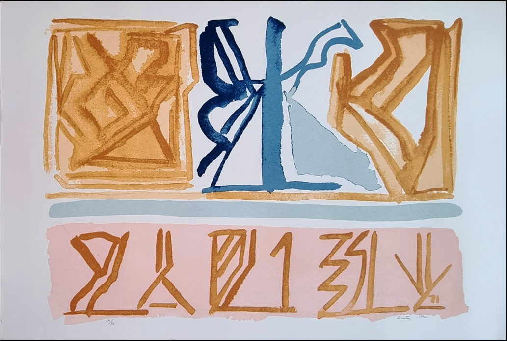 LICATA RICCARDO Torino 1929 - Venezia 2014 "Senza titolo" Serigrafia su cartoncino Fabriano, cotone 100%, cm 103,5x69,5 del 1972. Firmata e datata sul fronte in basso a destra, tiratura 24/90 a sinistra.