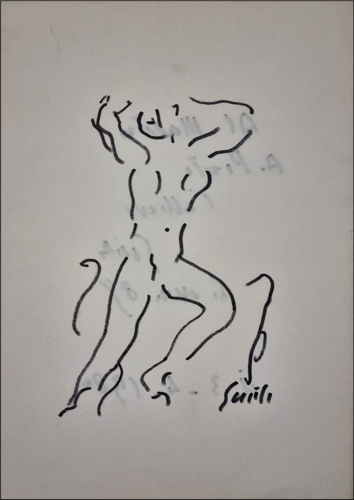 GUIDI VIRGILIO Roma 1891 - Venezia 1984 "Senza titolo" Disegno su carta cm 21x30 del 1980. Firmato sul fronte in basso a destra. Sul retro firmato, dedicato e datato.