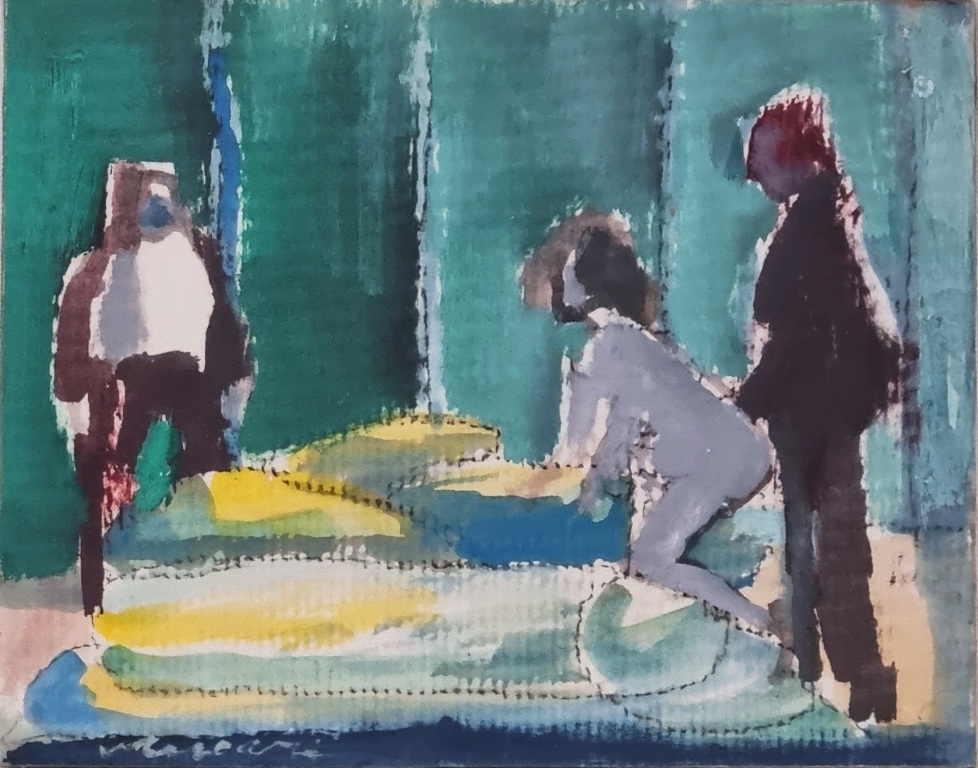 MACCARI MINO Siena 1898 - Roma 1989 "Senza titolo" Tecnica mista con olio su cartoncino cm 27,5x21,5, degli anni '70. Firmata sul fronte in basso a sinistra. Archivio su foto a cura dell'Archivio delle opere del Maestro.