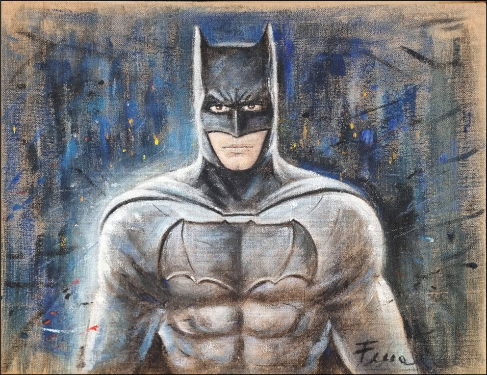 FENA Lecce 1958 "Batman" Acrilico e tecnica mista su tela di juta cm 78x71. Firmato sul fronte in basso a destra, firma con ideogramma al retro. Autentica dell'Artista su foto.