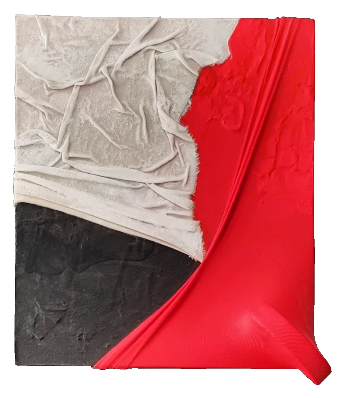 RIGEL HECTOR Roma 1957 "Superficie rossa in tensione" Vernice acro-vinilica, tela e tela estroflessa applicate su tavola cm 16x18, del 2012. Al verso firma e numero d'archivio. Archivio su foto a cura dell'Archivio Opere Hector Rigel.