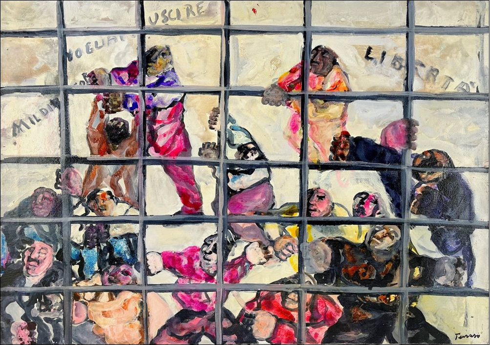 TERRUSO SAVERIO Monreale 1939 - Milano 2003 "Le sbarre" Olio su tela cm 70x50 del 1968. Firma, titolo e data al retro. Opera registrata presso l'archivio, come da dichiarazione su foto.